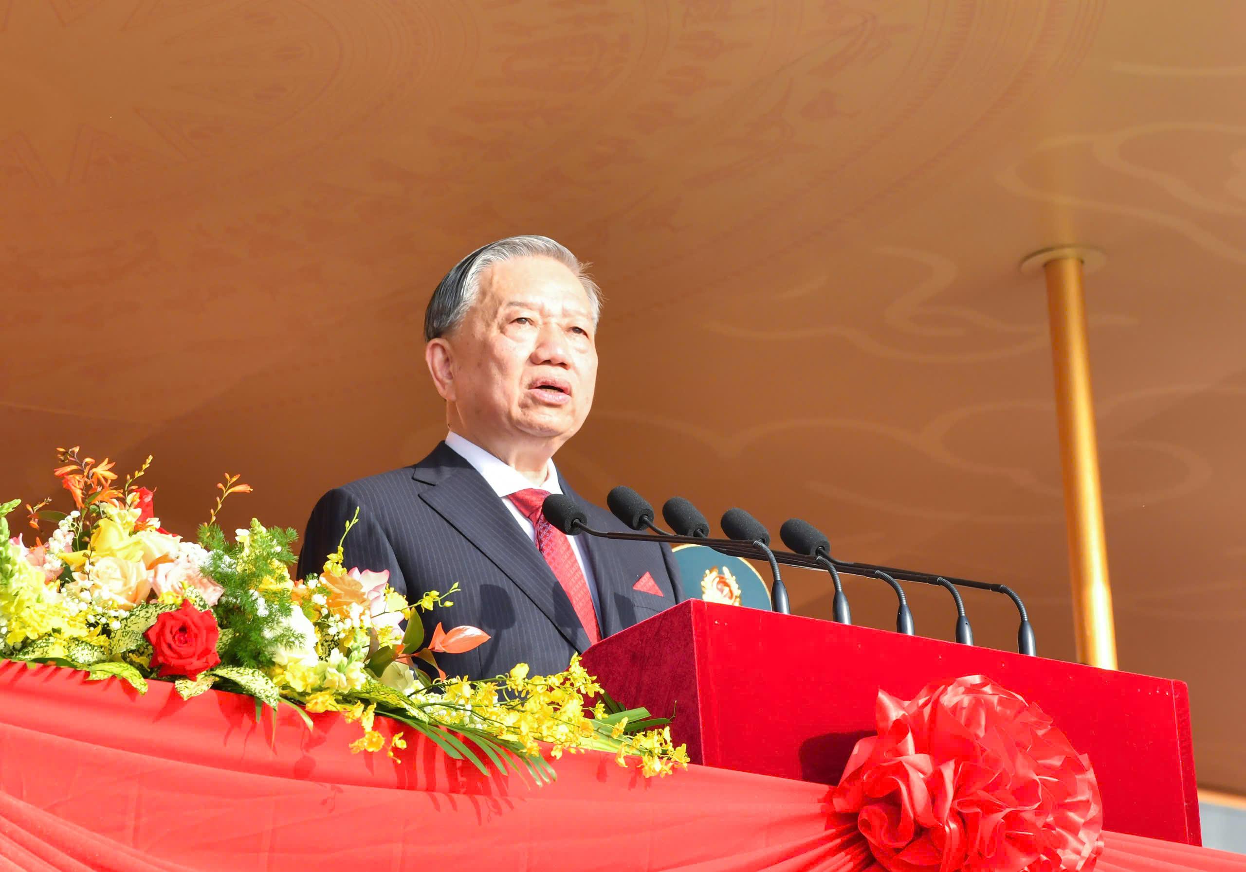 Thay mặt lãnh đạo Đảng, Nhà nước trình bày diễn văn kỷ niệm, Tổng Bí thư Tô Lâm nêu rõ, 80 năm trước, trên Quảng trường Ba Đình lịch sử, Chủ tịch Hồ Chí Minh kính yêu trịnh trọng đọc Tuyên ngôn Độc lập, khai sinh nước Việt Nam Dân chủ Cộng hòa, nay là nước Cộng hòa xã hội chủ nghĩa Việt Nam, nhà nước Dân chủ Nhân dân đầu tiên ở Đông Nam Á, mở ra kỷ nguyên độc lập, tự do cho đất nước. Từ thời khắc lịch sử ấy, dân tộc Việt Nam bước vào hành trình mới: Xây dựng Chính quyền Nhân dân, bảo vệ Tổ quốc, đưa đất nước vững vàng tiến lên con đường Xã hội chủ nghĩa, vì mục tiêu “Dân giàu, nước mạnh, dân chủ, công bằng, văn minh”.