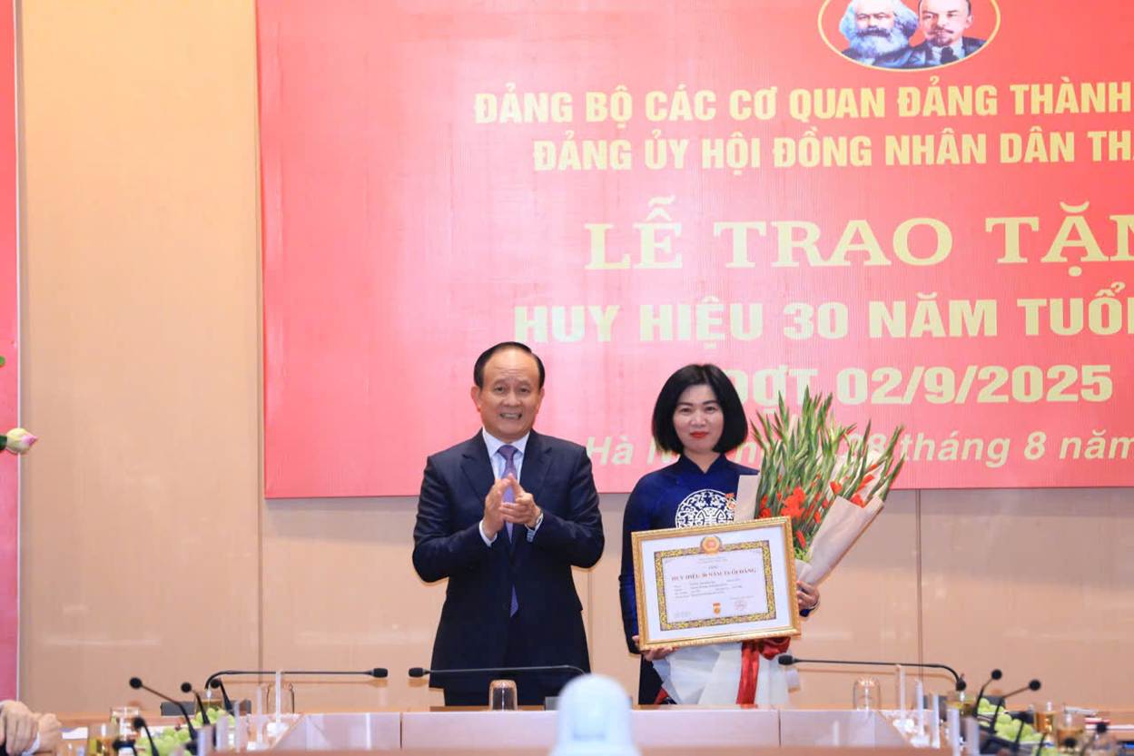 Phó Chủ tịch Thường trực HĐND thành phố Hà Nội Phùng Thị Hồng Hà vinh dự đón nhận Huy hiệu 30 năm tuổi Đảng