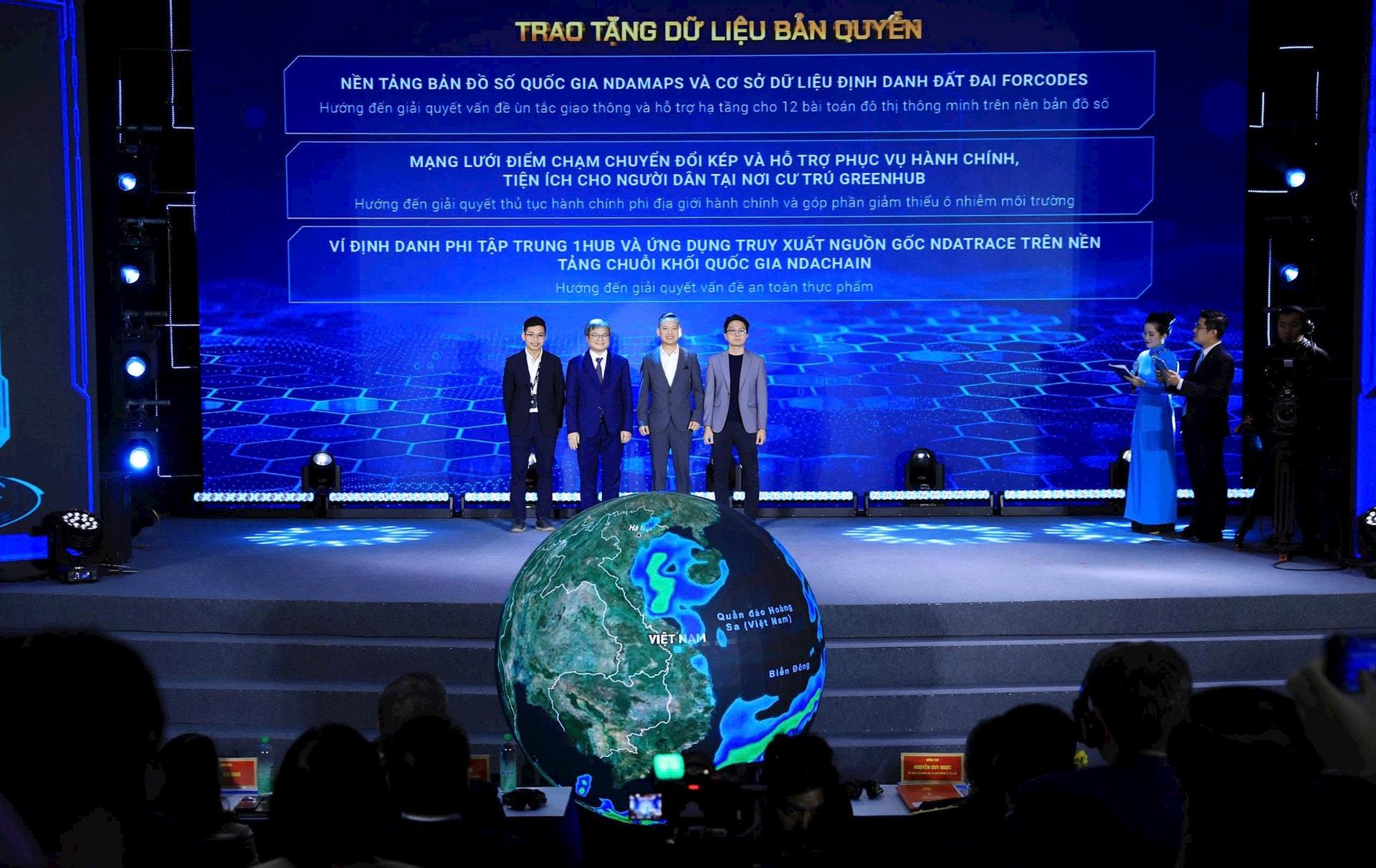 Phó Chủ tịch UBND thành phố Trương Việt Dũng tiếp nhận hệ thống dữ liệu bản quyền bản đồ số do các đơn vị sở hữu dữ liệu và bản quyền khoa học trao tặng Thành phố Hà Nội