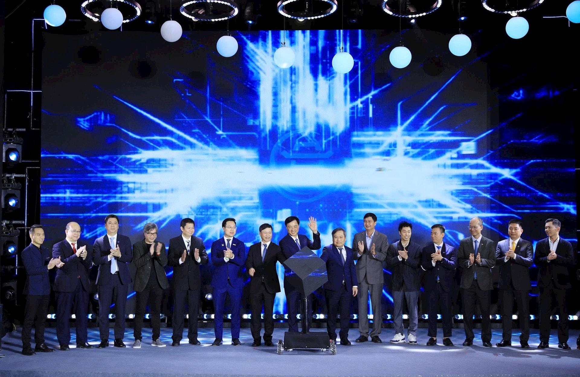 Bí thư Thành ủy Nguyễn Duy Ngọc và các đại biểu thực hiện nghi thức ra mắt Mạng lưới Đổi mới sáng tạo Hà Nội và Liên minh Quỹ Đầu tư mạo hiểm Thành phố