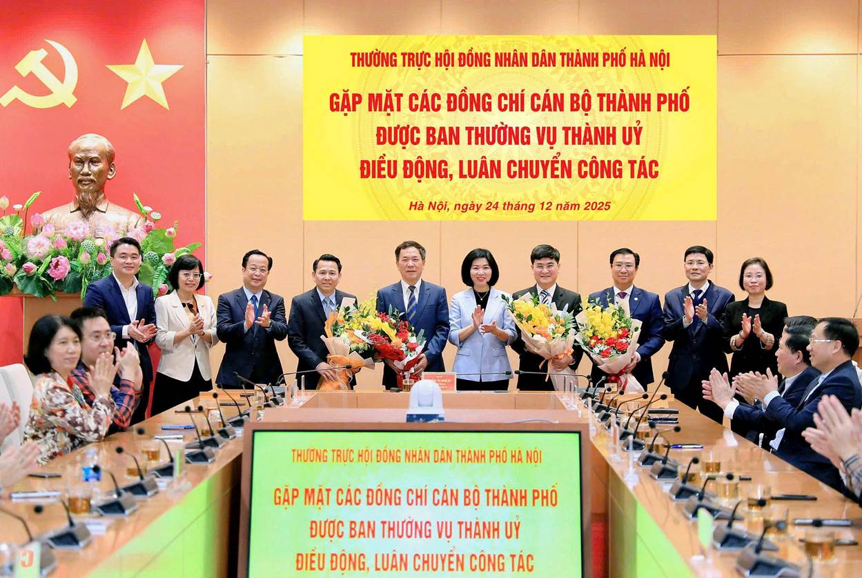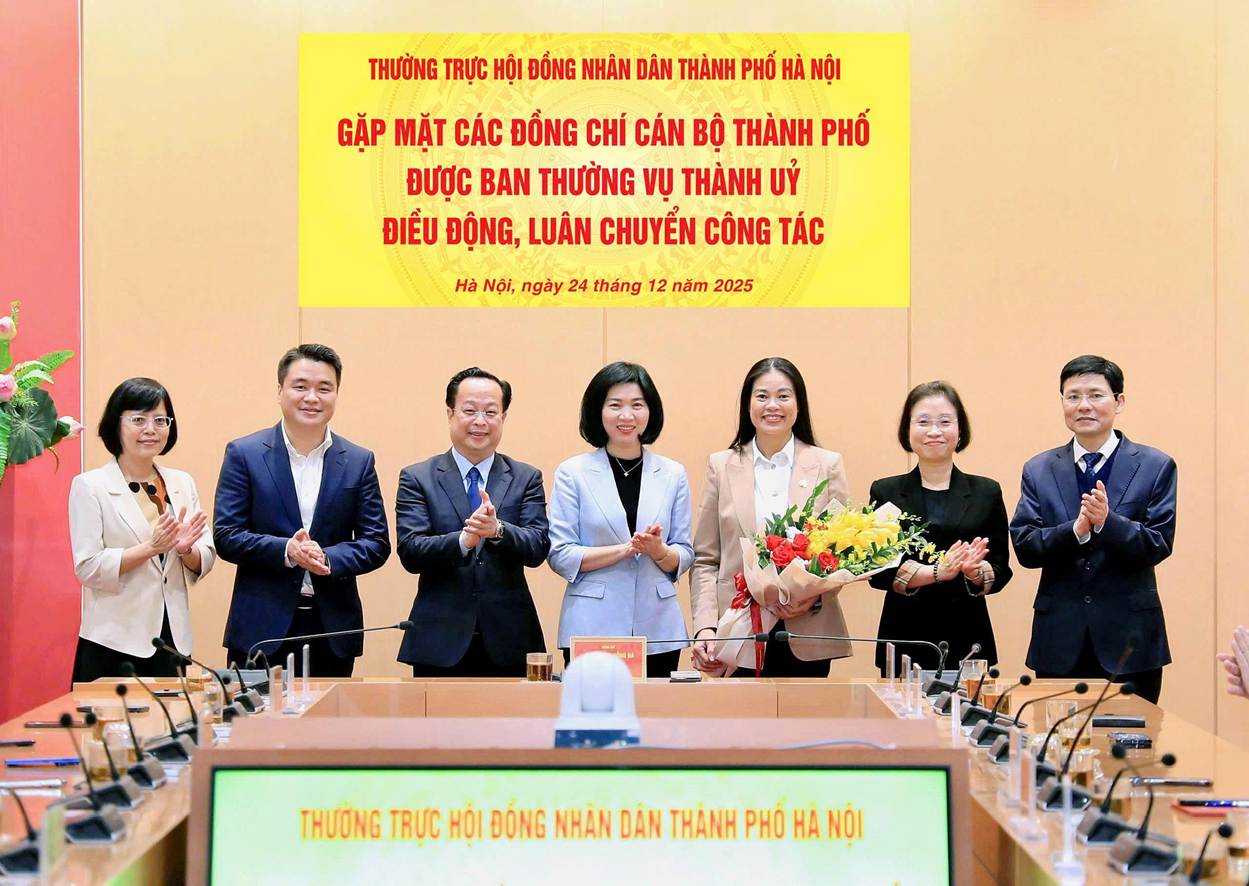 Sáng 24-12, sau khi trao quyết định tại Thành ủy, Thường trực HĐND thành phố tổ chức gặp mặt các đồng chí cán bộ của Đoàn ĐBQH và HĐND thành phố được Ban Thường trực Thành ủy điều động, luân chuyển công tác.