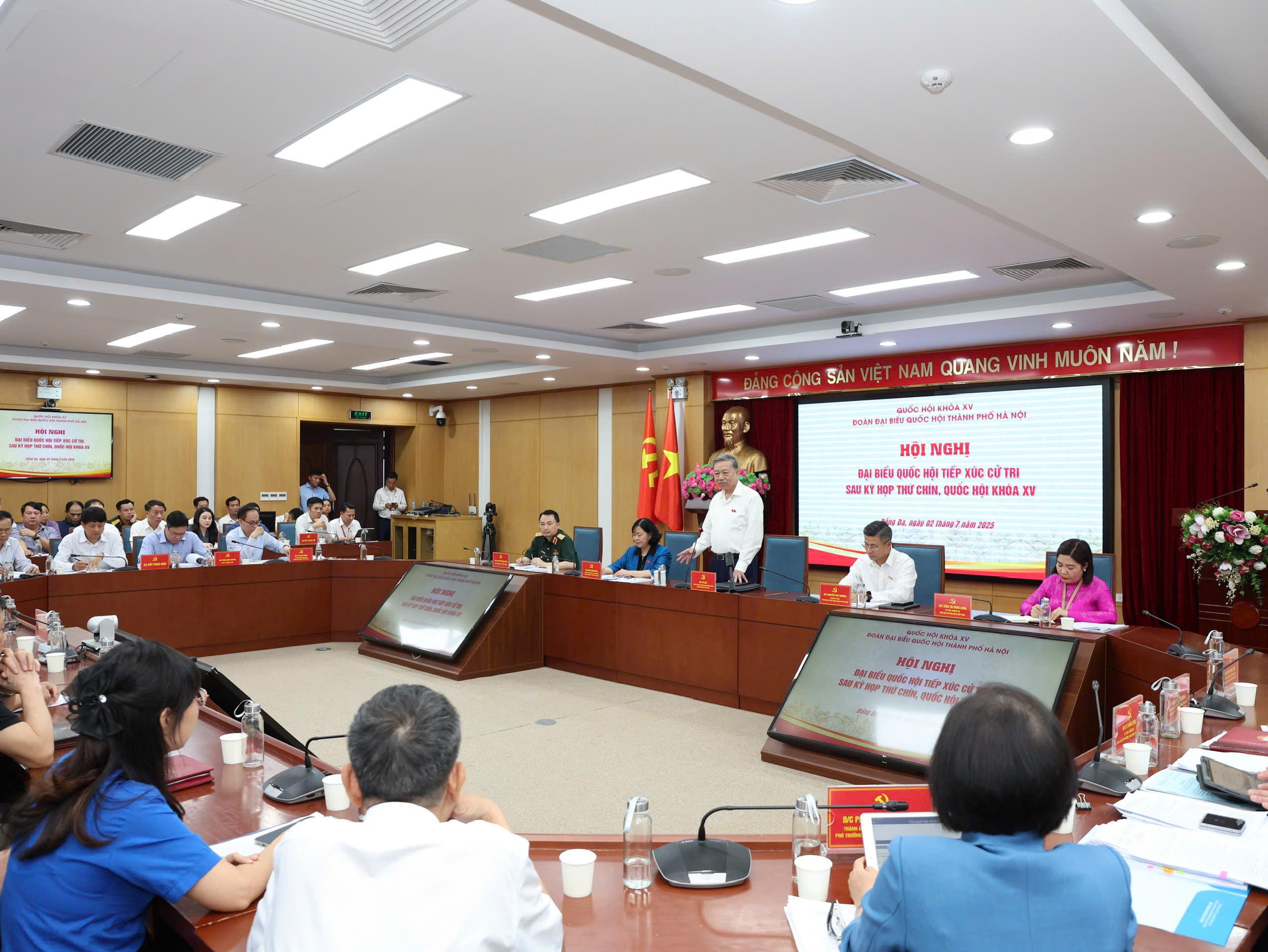 Phát biểu tại hội nghị, ghi nhận, tiếp thu toàn bộ ý kiến cử tri nêu, Tổng Bí thư Tô Lâm nhìn nhận, cử tri Hà Nội nắm rất sát và chắc tình hình, công việc quan trọng của đất nước, nhất là cuộc cách mạng sắp xếp tinh gọn bộ máy, sắp xếp đơn vị hành chính và tổ chức chính quyền địa phương hai cấp.