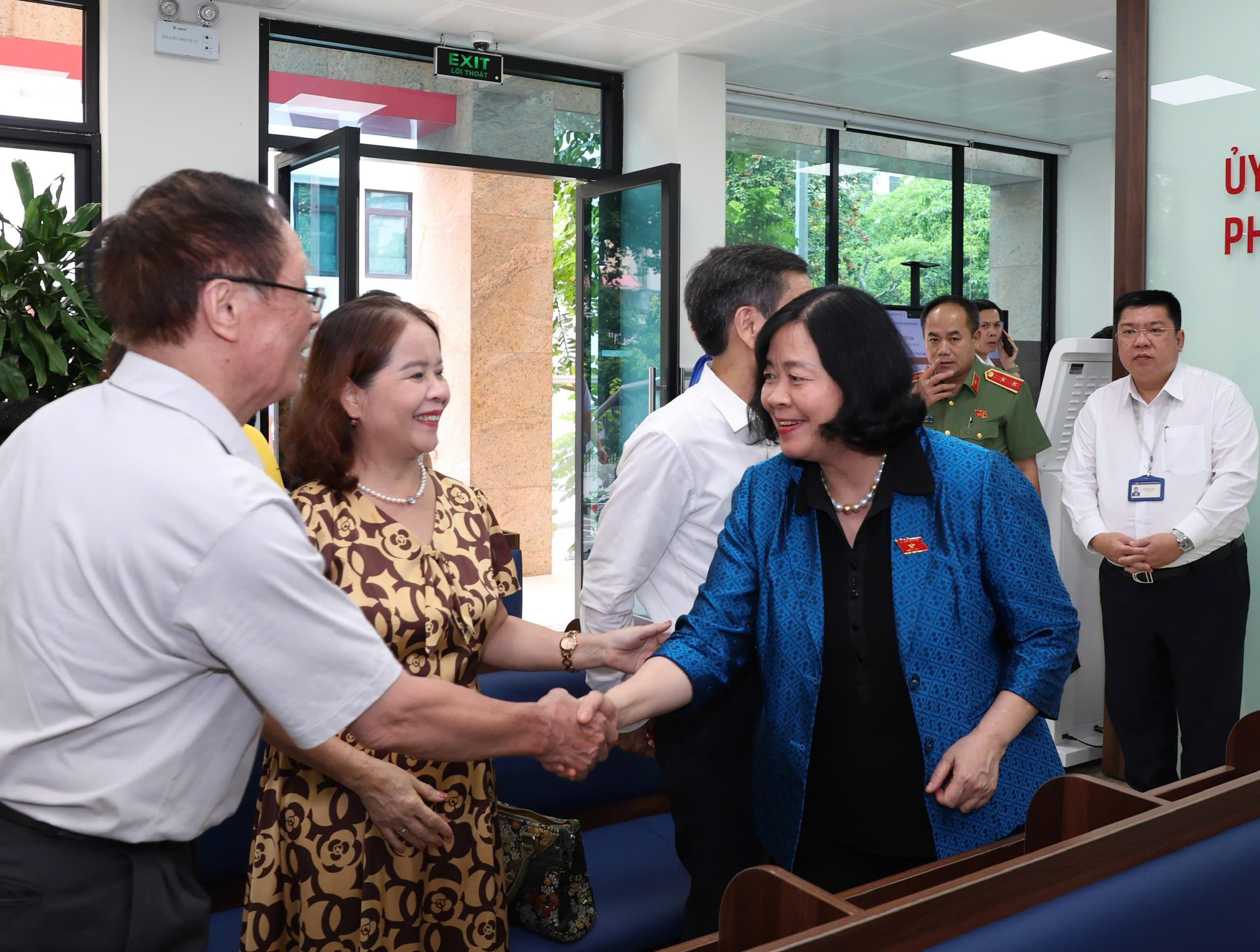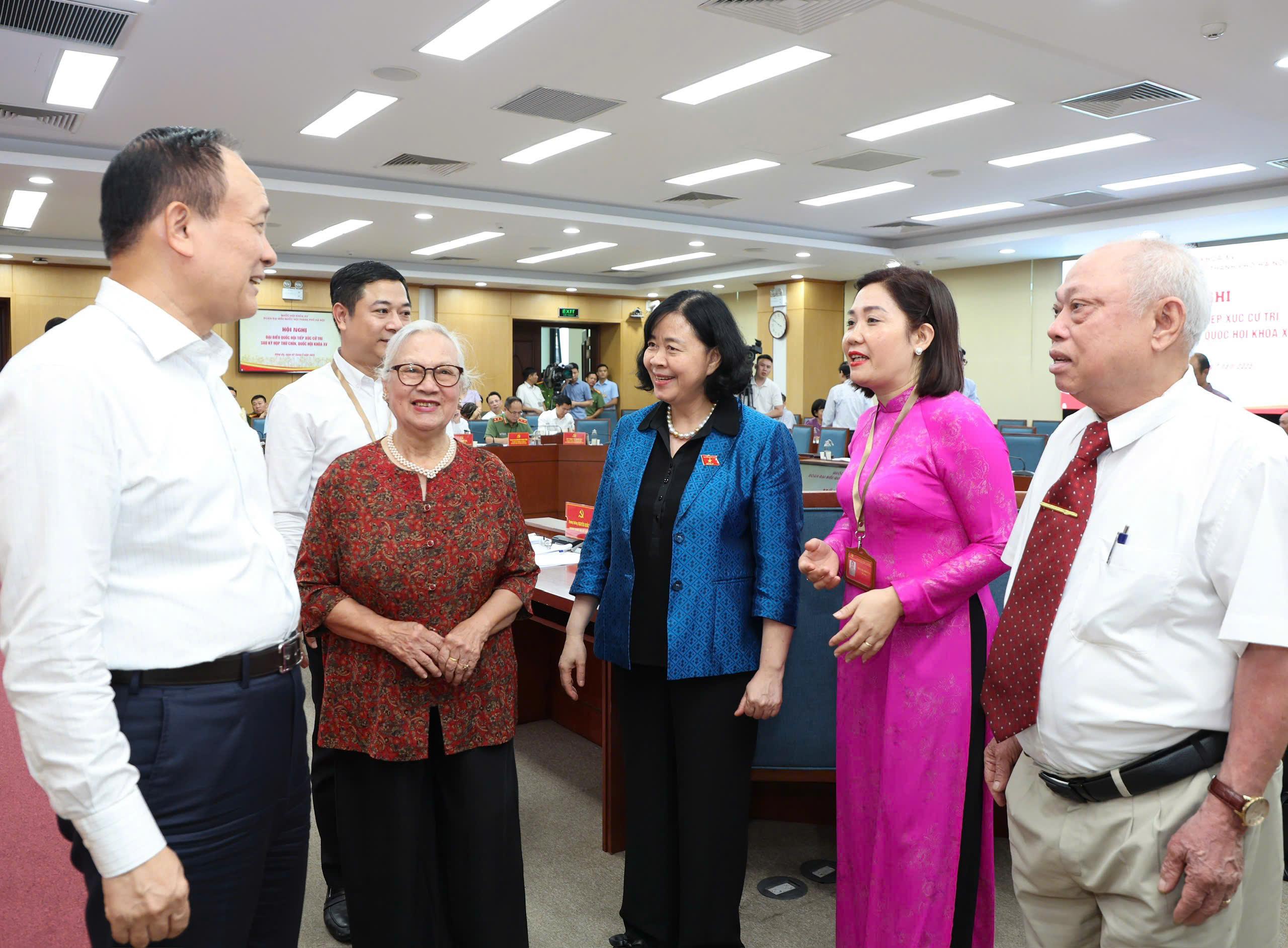 Bí thư Thành ủy Hà Nội Bùi Thị Minh Hoài, Chủ tịch HĐND thành phố Hà Nội Nguyễn Ngọc Tuấn với cử tri Đơn vị bầu cử số 1