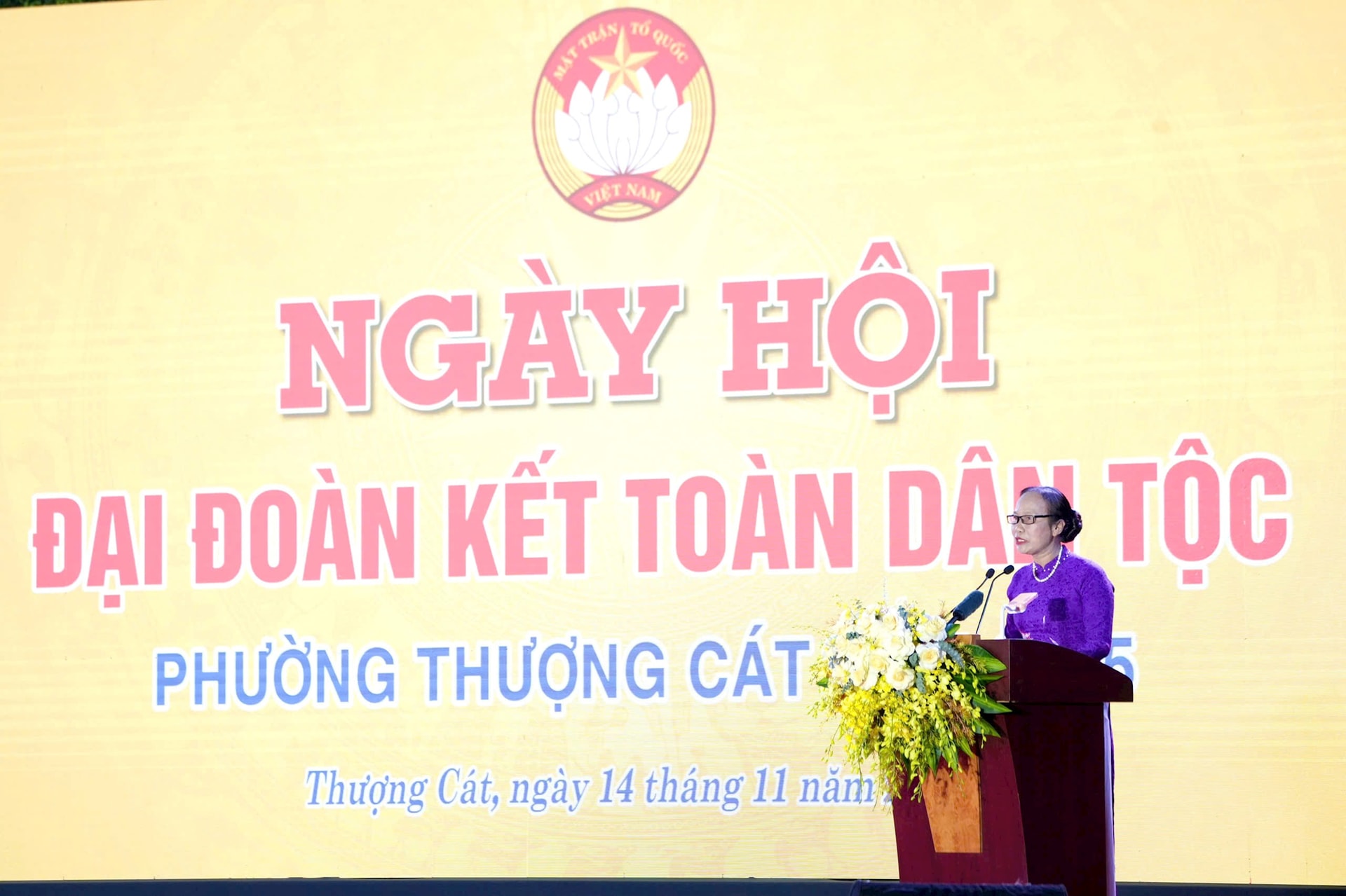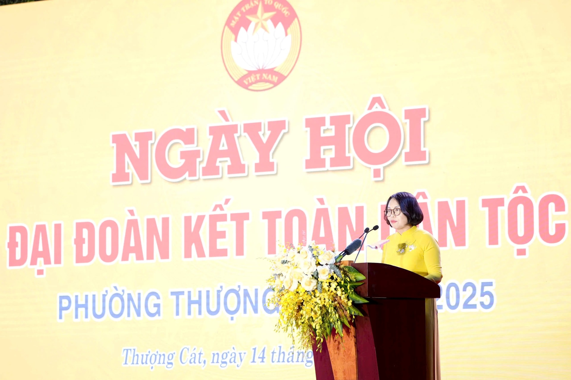 Báo cáo tại ngày hội, Chủ tịch Ủy ban MTTQ Việt Nam phường Thượng Cát Văn Thúy Hoa cho biết, phường Thượng Cát mang đậm bản sắc văn hóa truyền thống vùng ven sông Hồng, vẫn gìn giữ được không gian làng cổ, tín ngưỡng dân gian và các hoạt động lễ hội lâu đời.