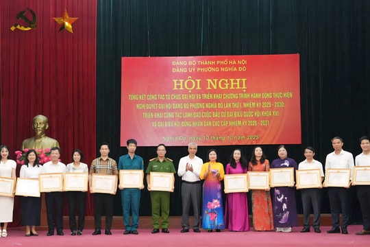 Dịp này, lãnh đạo phường Nghĩa Đô đã khen thưởng 17 tập thể và 32 cá nhân có thành tích trong công tác tổ chức Đại hội đại biểu Đảng bộ phường Nghĩa Đô lần thứ I.