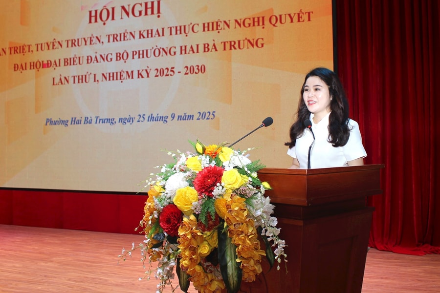 Trưởng ban Xây dựng Đảng - Đảng ủy phường Hai Bà Trưng Vũ Thanh Loan triển khai Kế hoạch số 03-KH/ĐU ngày 12-9-2025 của Đảng ủy phường về tổ chức quán triệt, tuyên truyền, triển khai thực hiện Nghị quyết Đại hội đại biểu Đảng bộ phường Hai Bà Trưng lần thứ I, nhiệm kỳ 2025-2030.