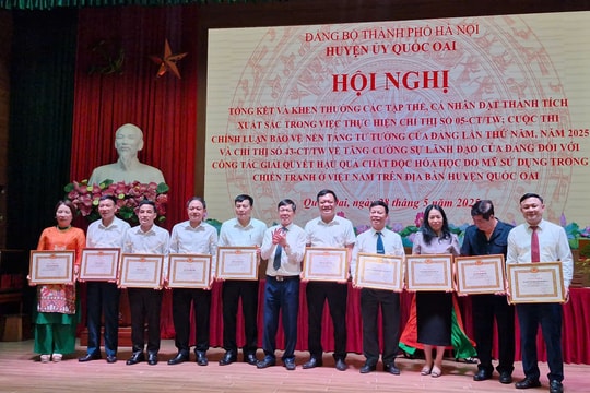 Nhân dịp này, Huyện ủy Quốc Oai đã khen thưởng 23 tập thể, cá nhân có thành tích xuất sắc trong học tập và làm theo tư tưởng, đạo đức, phong cách Hồ Chí Minh; khen thưởng 55 tập thể, cá nhân đạt thành tích xuất sắc trong tổ chức, tham gia cuộc thi chính luận bảo vệ nền tảng tư tưởng của Đảng lần thứ 5-2025…