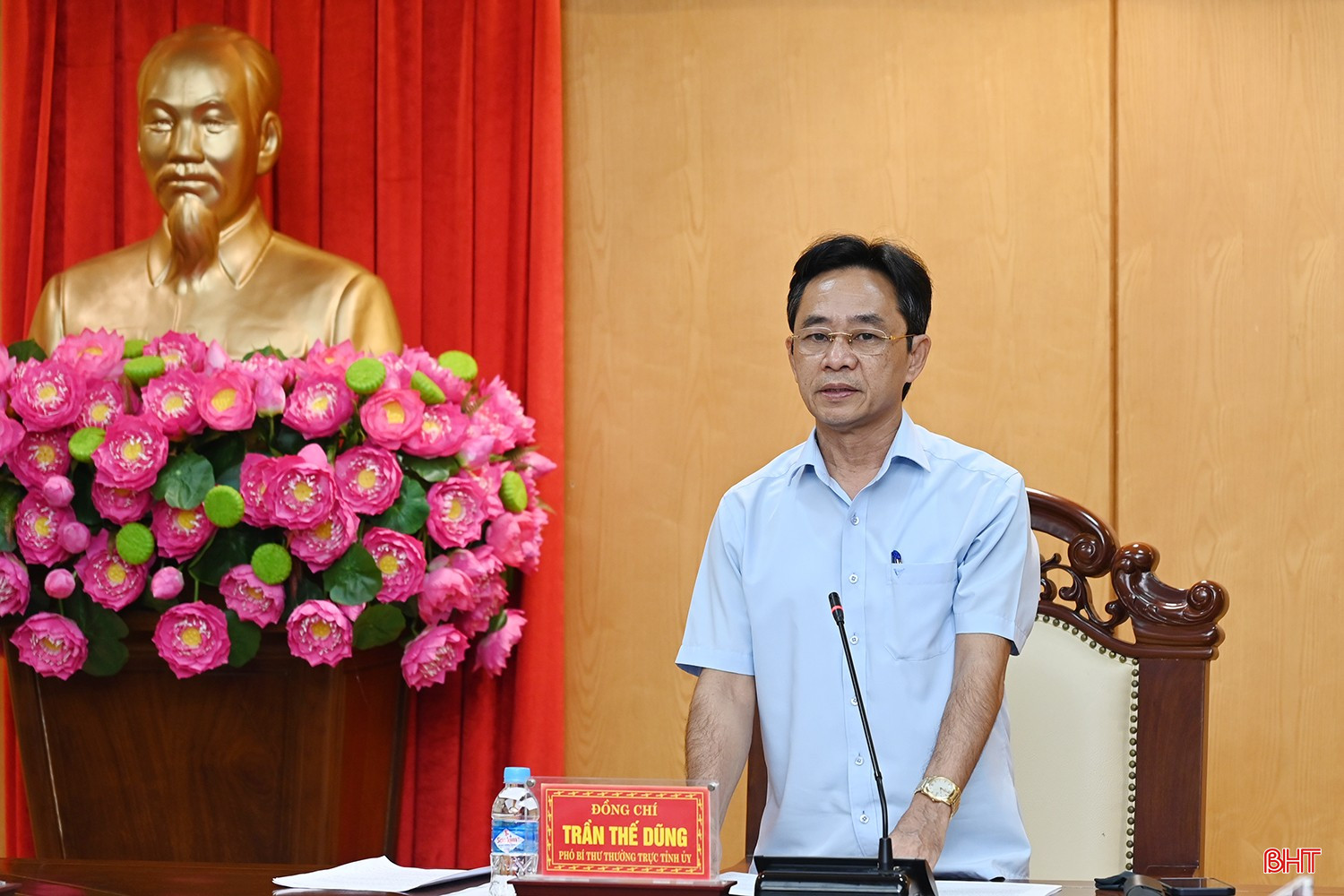 Phó Bí thư Thường trực Tỉnh ủy Trần Thế Dũng nhấn mạnh, thời gian từ nay đến Đại hội Đảng bộ tỉnh Hà Tĩnh lần thứ XX không còn nhiều trong khi khối lượng công việc lớn, các cơ quan, đơn vị liên quan cần tập trung cao độ, trách nhiệm, đẩy nhanh tiến độ thực hiện.