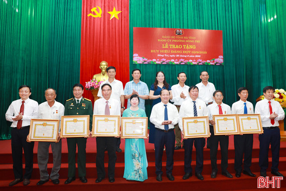 (Baohatinh.vn) - Nhân kỷ niệm 80 năm Cách mạng Tháng Tám và Quốc khánh 2/9, Đảng bộ phường Sông Trí (Hà Tĩnh) tổ chức trao huy hiệu Đảng cho 53 đảng viên từ 30 - 60 tuổi đảng.