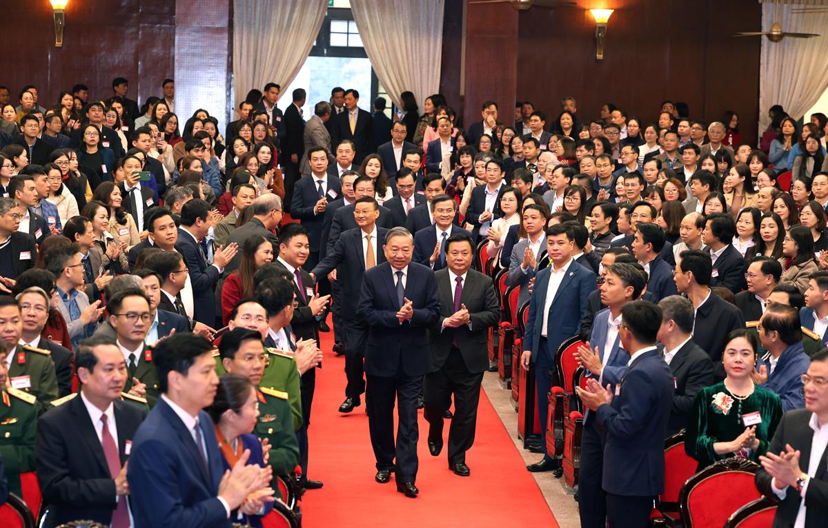 Tổng Bí thư Tô Lâm và các đồng chí lãnh đạo Đảng, Nhà nước đến dự Hội nghị