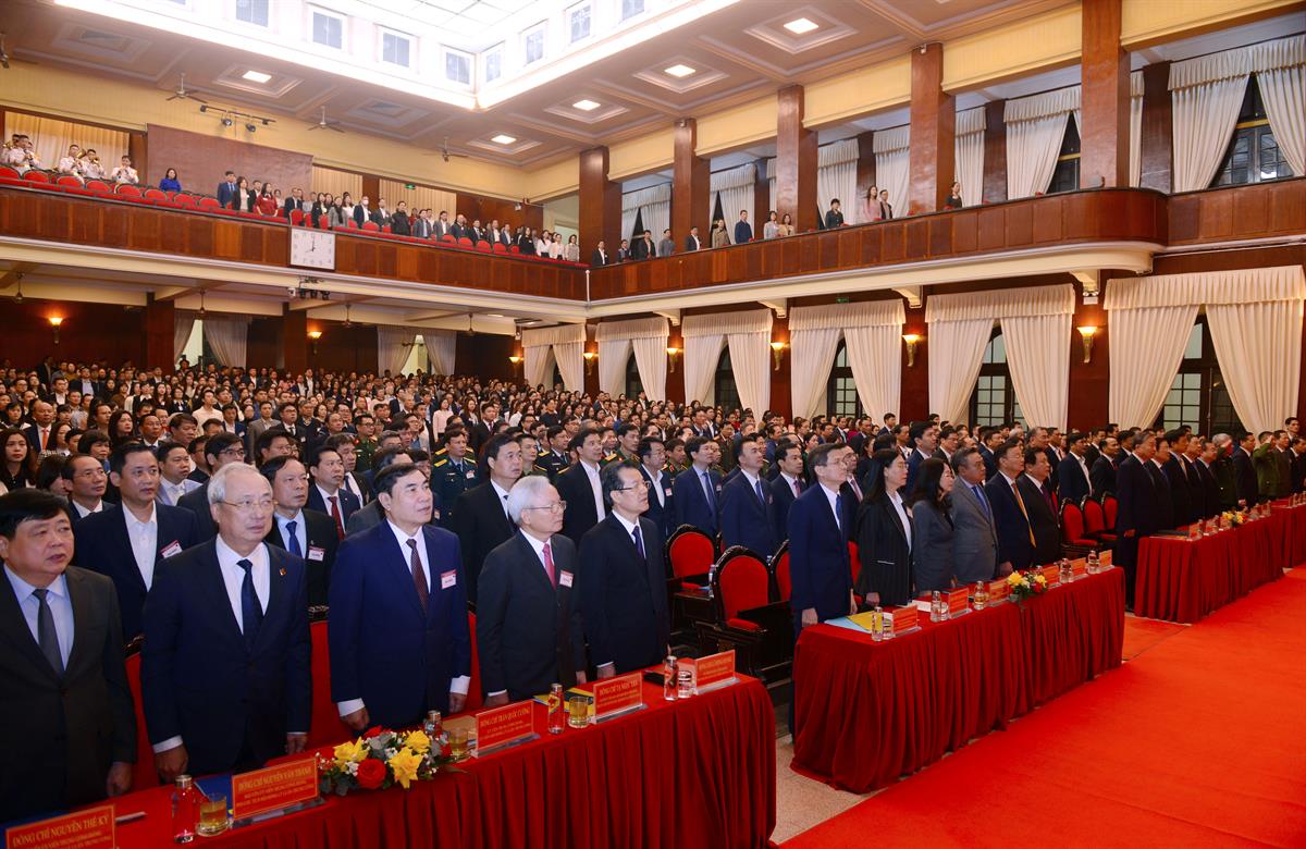 Tổng Bí thư Tô Lâm và các đại biểu thực hiện nghi lễ chào cờ