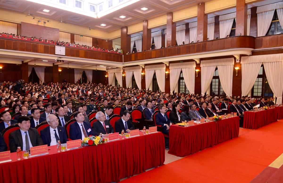 GS,TS Nguyễn Xuân Thắng, Uỷ viên Bộ Chính trị, Giám đốc Học viện Chính trị quốc gia Hồ Chí Minh, Chủ tịch Hội đồng Lý luận Trung ương phát biểu tại Hội nghị