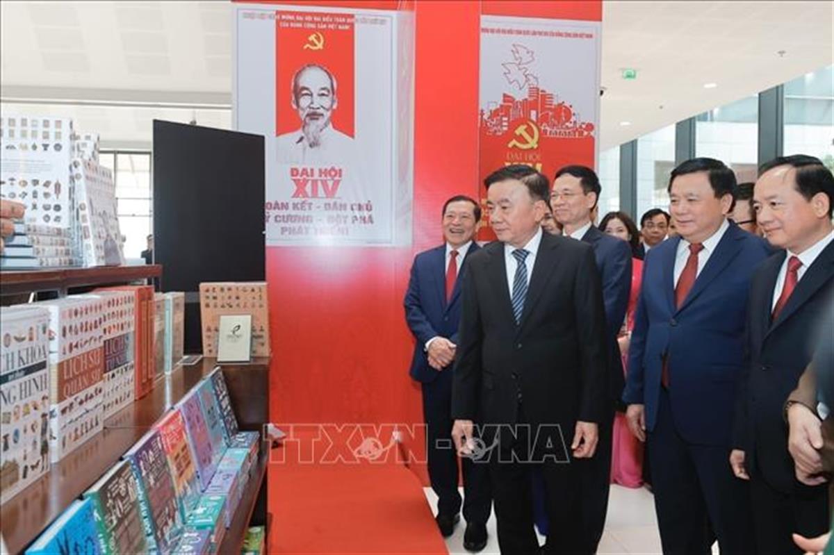 Thường trực Ban Bí thư Trần Cẩm Tú cùng các đồng chí lãnh đạo Đảng, Nhà nước tham quan Trưng bày sách