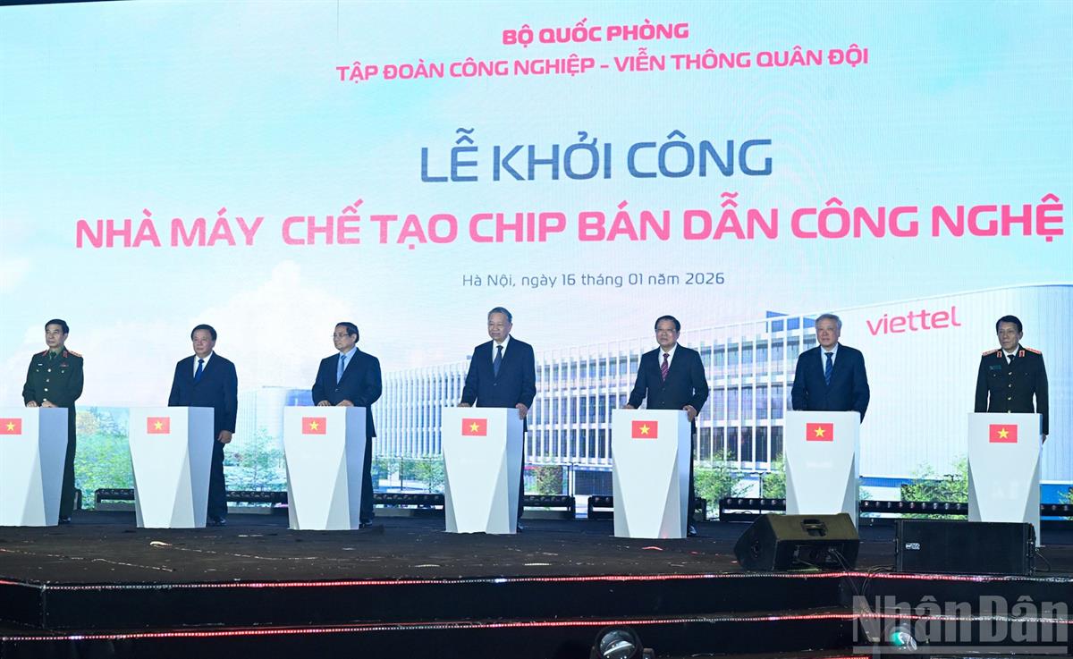 Tổng Bí thư Tô Lâm và các đồng chí lãnh đạo Đảng, Nhà nước dự Lễ khởi công xây dựng Nhà máy chế tạo chip bán dẫn công nghệ cao của Tập đoàn Công nghiệp Viễn thông Quân đội, Bộ Quốc phòng.