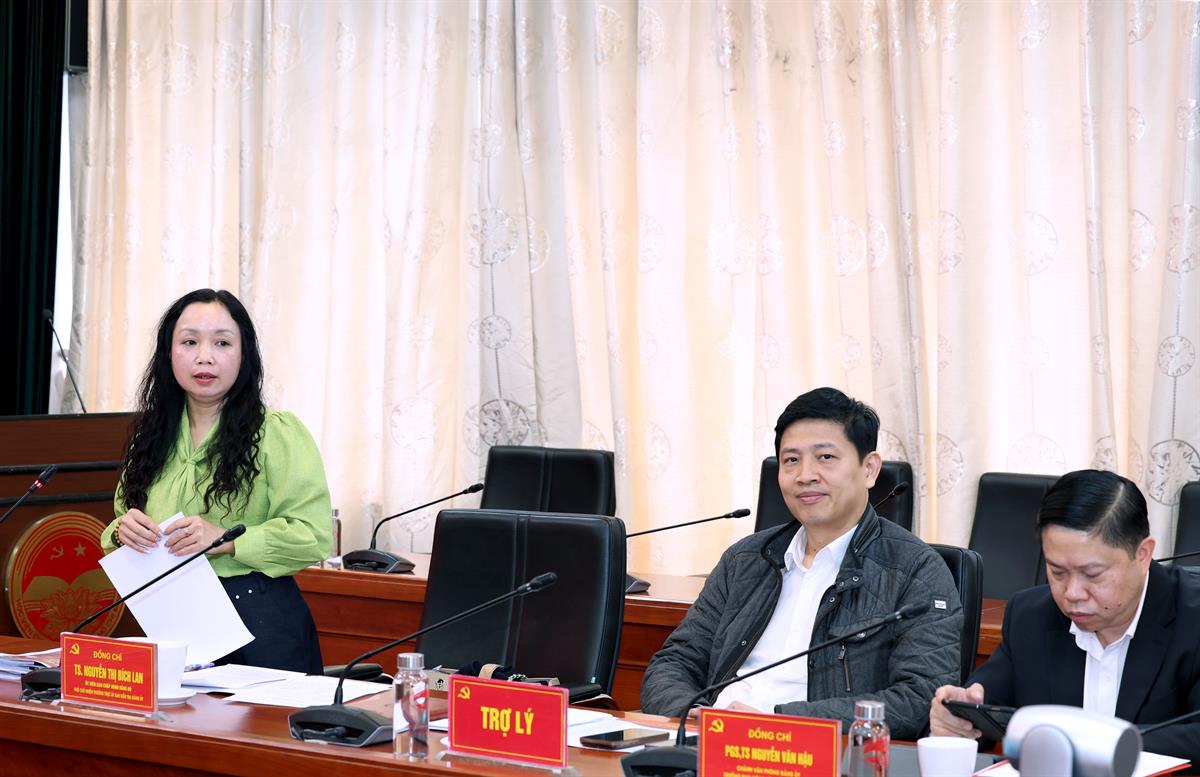 TS Nguyễn Thị Bích Lan, Ủy viên Ban Chấp hành Đảng bộ Học viện, Bí thư chi bộ báo cáo tại Hội nghị