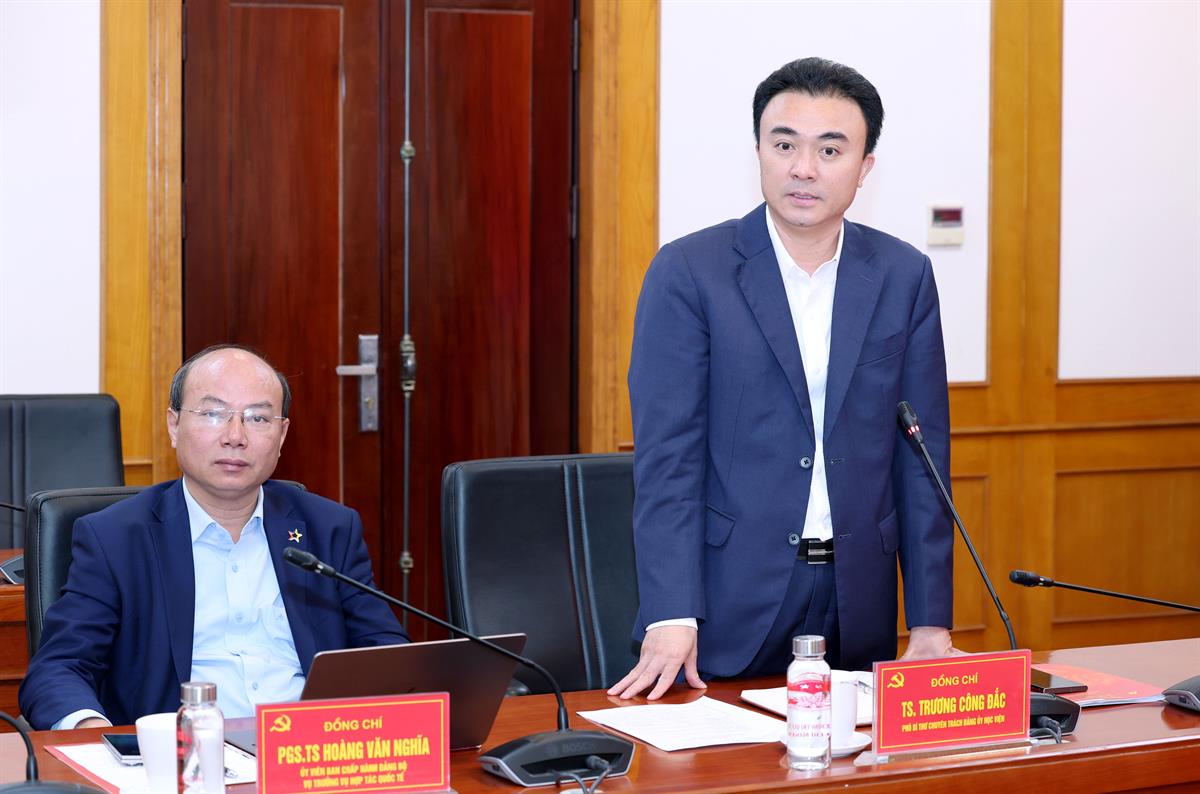 Cùng chủ trì có các đồng chí: PGS,TS Nguyễn Văn Hậu, Chánh Văn phòng Đảng ủy, Trưởng Ban Công tác Đảng - Đoàn thể; TS Nguyễn Thị Bích Lan, Ủy viên Ban Chấp hành Đảng bộ Học viện, Bí thư chi bộ.