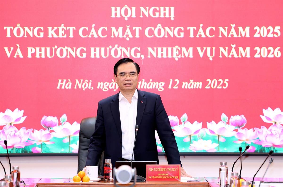Qua các báo cáo tổng kết của đơn vị và các ý kiến phát biểu tại Hội nghị, PGS,TS Dương Trung Ý, Ủy viên Ban Thường vụ Đảng ủy, Phó Giám đốc Học viện ghi nhận những khó khăn của Ban Thanh tra và biểu dương, chúc mừng những kết quả mà Ban đã đạt được trong bối cảnh năm 2025 có nhiều tác động lớn đến các hoạt động của Học viện nói chung, của Ban Thanh tra nói riêng. Đồng chí đánh giá cao và khẳng định rằng, Ban Thanh tra đã thực hiện tốt việc ổn định tư tưởng, niềm tin của cán bộ, cũng như củng cố vững nội bộ đơn vị để hoàn thành tròn vai các nhiệm vụ cả về chuyên môn và công tác Đảng.