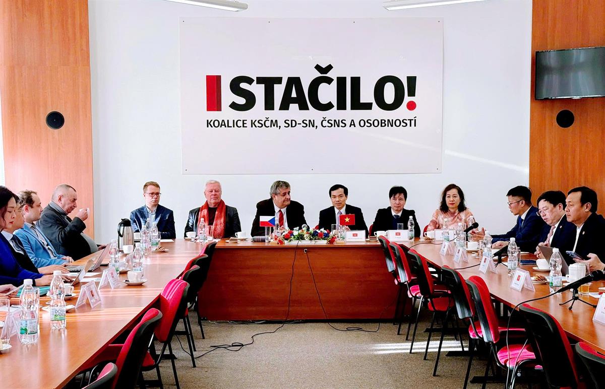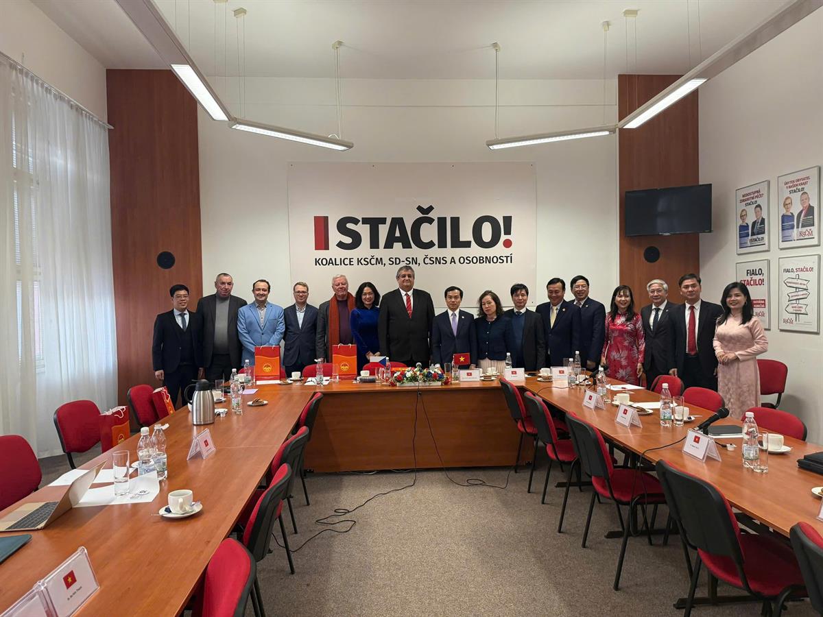 Trao đổi tại buổi làm việc, ông Petr Šimůnek, Phó Chủ tịch thứ nhất, Ban Chấp hành Trung ương KSČM cho biết, được thành lập vào 31/3/1990, KSČM là một trong những đảng chính trị lâu đời và có tổ chức chặt chẽ tại Cộng hòa Séc, theo đuổi đường lối chủ nghĩa xã hội, công bằng xã hội và phát triển bền vững. Trong hơn ba thập niên hoạt động, KSČM từng có đại diện tại Quốc hội Séc, Nghị viện châu Âu và chính quyền địa phương, đóng vai trò trong đời sống chính trị quốc gia, đặc biệt ở lĩnh vực xã hội, lao động và chính sách công.