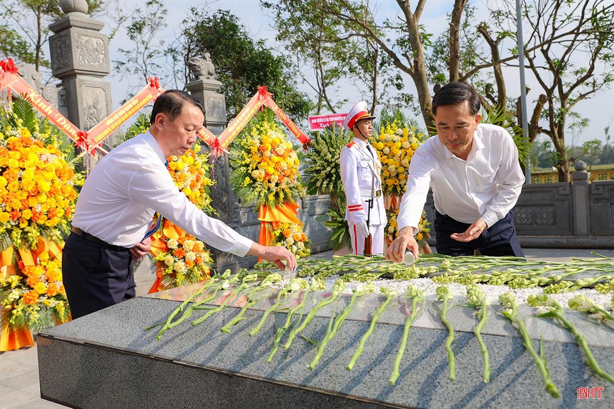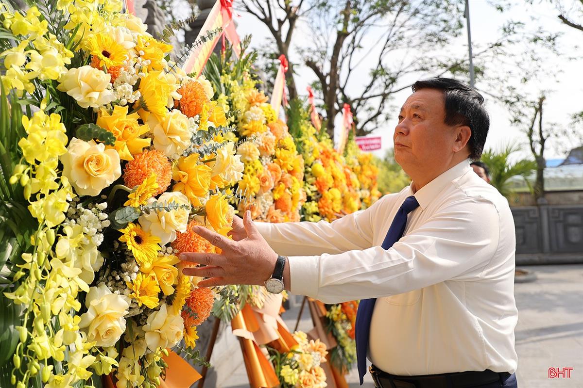 Đồng chí Nguyễn Xuân Thắng và các đại biểu dâng hương Đại thi hào Nguyễn Du.