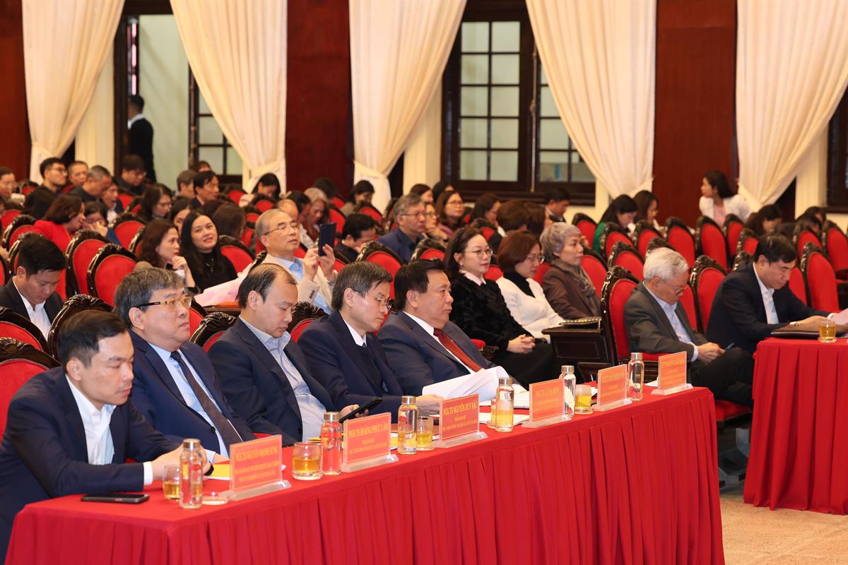 Tham dự Hội nghị có GS,TS Tạ Ngọc Tấn, nguyên Ủy viên Trung ương Đảng, nguyên Giám đốc Học viện, Phó Chủ tịch thường trực Hội đồng Lý luận Trung ương; PGS,TS Đoàn Minh Huấn, Ủy viên Trung ương Đảng, Phó Giám đốc thường trực Học viện; PGS,TS Lê Hải Bình, Ủy viên dự khuyết Trung ương Đảng, Phó Giám đốc Học viện; các đồng chí Phó Giám đốc Học viện: PGS,TS Nguyễn Duy Bắc, PGS,TS Hoàng Phúc Lâm, PGS,TS Nguyễn Mạnh Hùng; các đồng chí thường trực Hội đồng Lý luận Trung ương; Giám đốc các Học viện trực thuộc và toàn thể cán bộ, công chức, viên chức, người lao động tại Trung tâm Học viện.