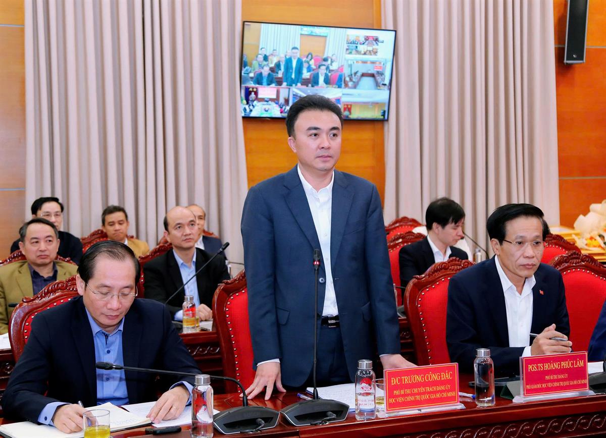 Kết luận Hội nghị, PGS,TS Đoàn Minh Huấn, Ủy viên Ban Chấp hành Trung ương Đảng, Phó Giám đốc thường trực Học viện biểu dương và ghi nhận những thành tựu đột phá Học viện đã đạt được trong công tác tổ chức, cán bộ năm 2025, trong đó đặc biệt nhấn mạnh đến những thành tích trong công tác tổ chức bộ máy, sắp xếp tinh gọn, cơ cấu lại, định hình nên một hệ thống mới với các bộ phận cấu thành, các đơn vị thành viên theo cơ chế vận hành mới nhưng đồng thời vẫn đảm bảo triển khai ổn định, thông suốt các nhiệm vụ thường xuyên khác.