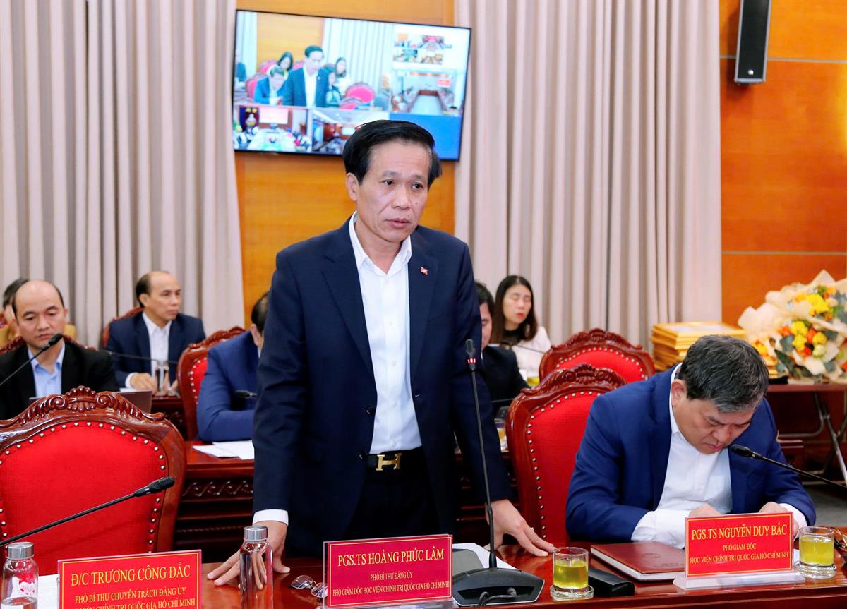 PGS,TS Đoàn Minh Huấn, Ủy viên Ban Chấp hành Trung ương Đảng, Phó Giám đốc thường trực Học viện Chính trị quốc gia Hồ Chí Minh đồng chủ trì Hội nghị.