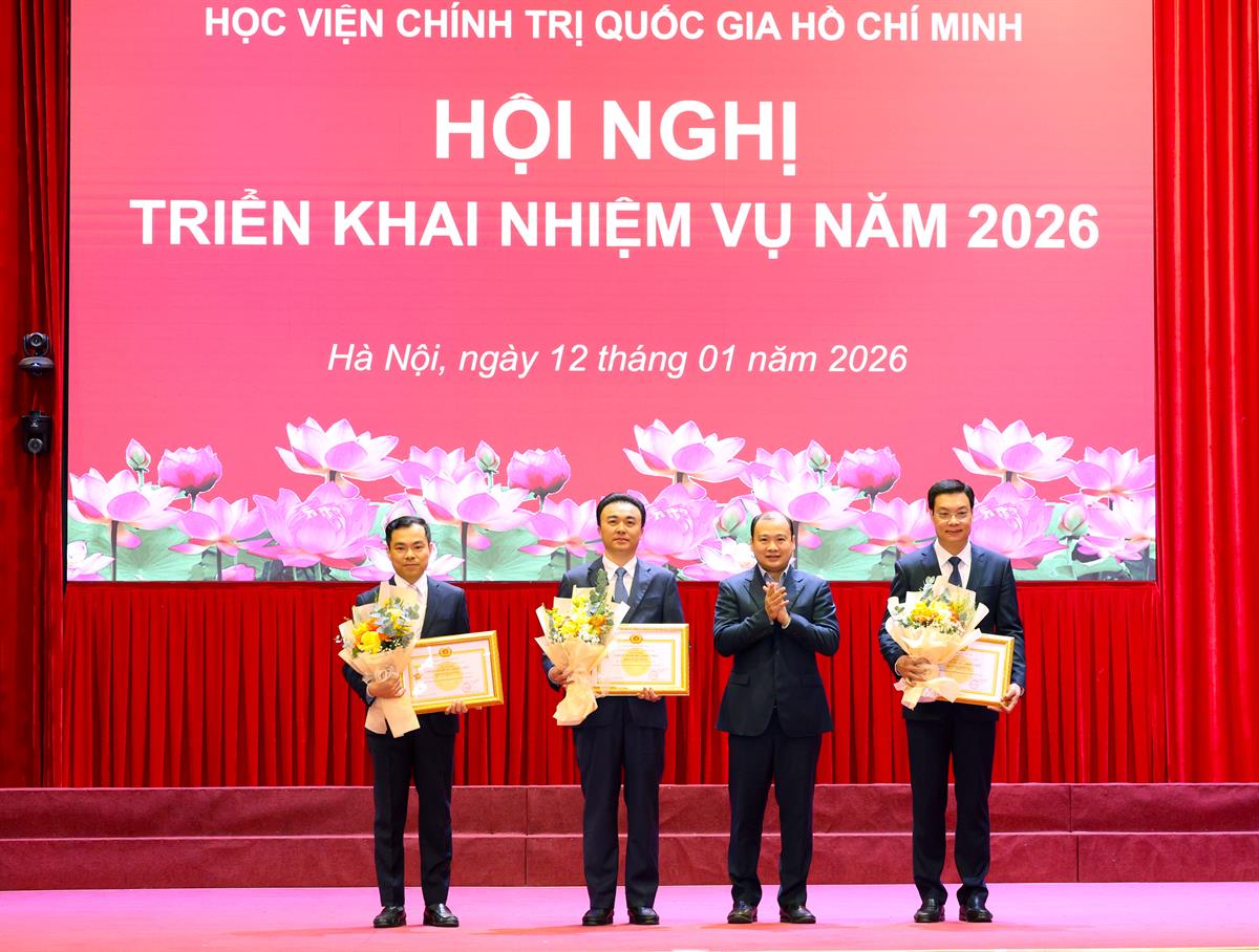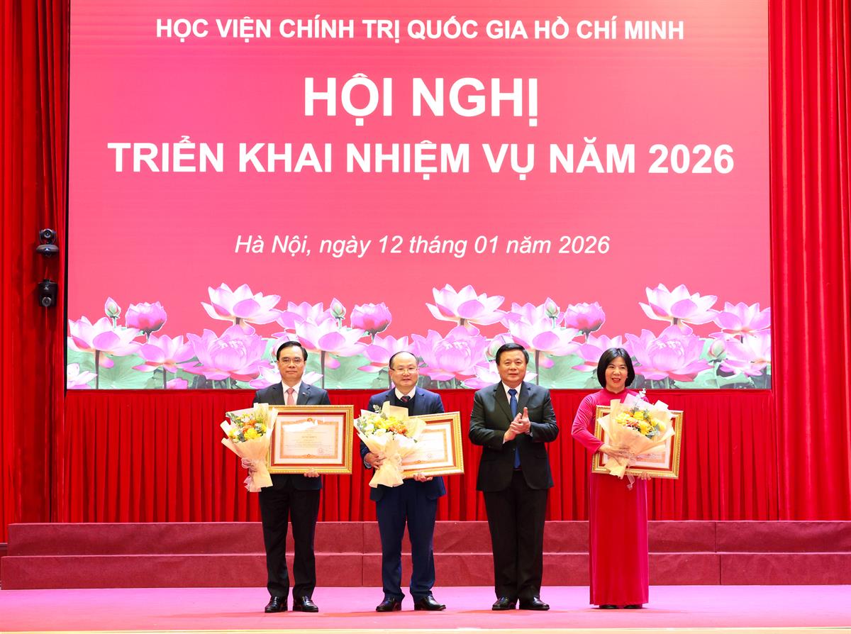 Tại Hội nghị, Hội đồng Thi đua – Khen thưởng Học viện công bố Quyết định tặng Bằng khen của Thủ tướng Chính phủ cho 03 cá nhân; Quyết định tặng danh hiệu thi đua cấp Học viện năm 2025: Danh hiệu “Cờ thi đua của Học viện” cho 05 tập thể đã có thành tích hoàn thành xuất sắc, toàn diện nhiệm vụ công tác, dẫn đầu các Khối Thi đua thuộc Học viện năm 2025; Danh hiệu “Chiến sĩ thi đua Học viện” cho 03 cá nhân đã có thành tích xuất sắc tiêu biểu trong công tác từ năm 2023 đến năm 2025./.