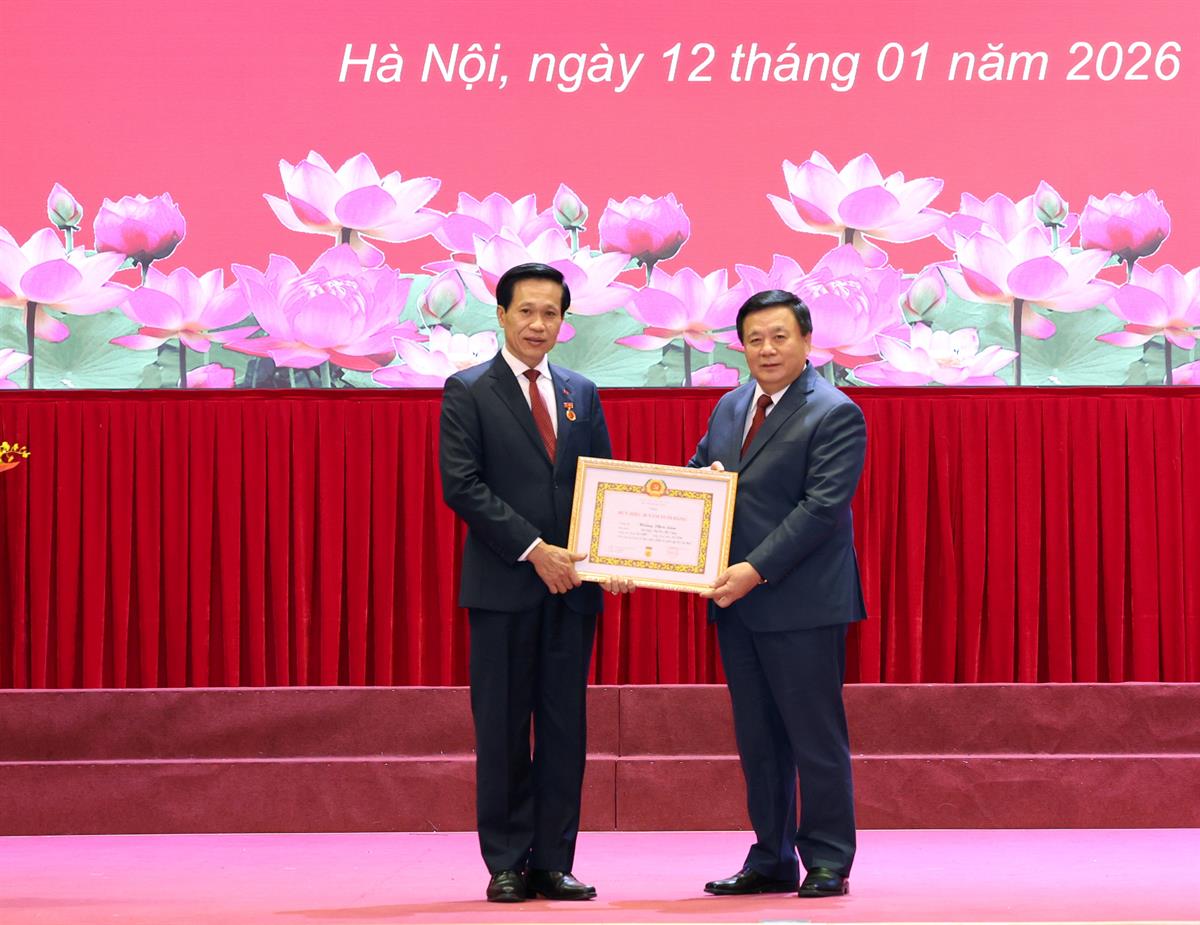 GS,TS Nguyễn Xuân Thắng trao tặng Huy hiệu 30 năm tuổi Đảng cho PGS,TS Hoàng Phúc Lâm