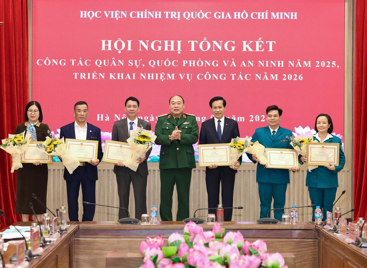 Ghi nhận những kết quả Học viện đã đạt được trong công tác quốc phòng, an ninh, tại Hội nghị, 01 tập thể và 05 cá nhân thuộc Học viện đã được trao tặng Bằng khen của Bộ trưởng Bộ Quốc phòng vì đã có thành tích xuất sắc trong thực hiện nhiệm vụ quân sự, quốc phòng, góp phần tích cực vào sự nghiệp xây dựng và bảo vệ Tổ quốc; 01 tập thể và 01 cá nhân thuộc Học viện đã được Bộ Tư lệnh Thủ đô Hà Nội khen thưởng vì đã đạt thành tích tiêu biểu trong phong trào Thi đua Quyết thắng năm 2025.