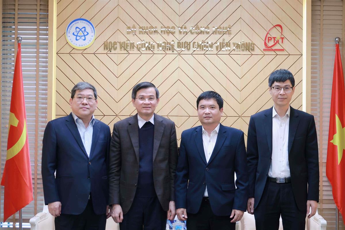 Đoàn chụp ảnh chung với lãnh đạo Học viện Công nghệ Bưu chính Viễn thông