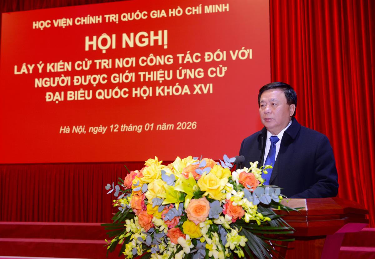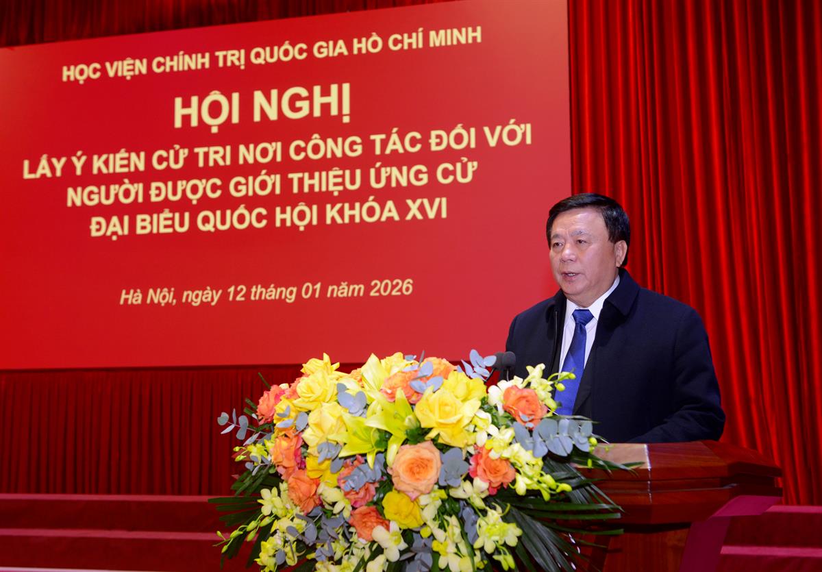 Phát biểu chỉ đạo Hội nghị, GS,TS Nguyễn Xuân Thắng, Ủy viên Bộ Chính trị, Giám đốc Học viện Chính trị quốc gia Hồ Chí Minh, Chủ tịch Hội đồng Lý luận Trung ương nhấn mạnh, hội nghị lấy ý kiến cử tri đối với người được giới thiệu ứng cử Đại biểu Quốc hội khóa XVI tại Học viện có ý nghĩa và trách nhiệm rất quan trọng. Đây được coi là việc tiếp tục khẳng định vai trò, vị trí, nâng cao uy tín, ảnh hưởng của Học viện trên nhiều phương diện, đồng thời thông qua nhân sự đại biểu quốc hội Học viện sẽ bám sát thực tiễn công tác tại Quốc hội và địa phương, qua đó góp phần hoàn thiện lý luận và nâng cao chất lượng hiệu quả của công tác đào tạo, bồi dưỡng và tư vấn chính sách.