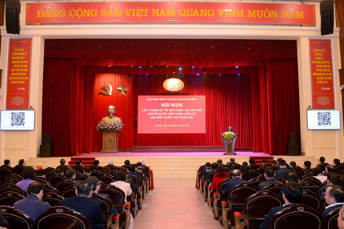 Hội nghị lấy ý kiến cử tri tại Học viện Chính trị quốc gia Hồ Chí Minh đối với người được giới thiệu ứng cử Đại biểu Quốc hội khóa XVI được tổ chức nhằm quán triệt các chủ trương của Ủy ban Thường vụ Quốc hội, Ủy ban Trung ương Mặt trận Tổ quốc Việt Nam về việc giới thiệu nhân sự tham gia ứng cử đại biểu Quốc hội khóa XVI; lựa chọn giới thiệu nhân sự có đủ điều kiện, tiêu chuẩn đại diện cho Học viện tham gia ứng cử đại biểu quốc hội khóa XVI đảm bảo chặt chẽ, khách quan, đúng quy trình hiện hành của pháp luật, hướng dẫn của Ủy ban Thường vụ Quốc hội và Ủy ban Trung ương Mặt trận Tổ quốc Việt Nam.