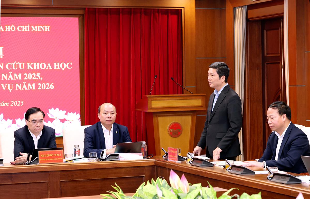 Với ý nghĩa đó, PGS,TS Dương Trung Ý đề nghị hội nghị tập trung đánh giá sát thực, khách quan những kết quả đạt được trong năm 2025, đặc biệt là việc hiện thực hóa các văn kiện mới của Bộ Chính trị vào đặc thù công tác của từng đơn vị. Trên cơ sở phân tích rõ những tồn tại, hạn chế, khó khăn, PGS,TS Dương Trung Ý đề nghị đại biểu tham dự hội nghị đề xuất những giải pháp đột phá chiến lược trong công tác nghiên cứu khoa học và hợp tác quốc tế, nhằm góp phần khẳng định vị thế “Trung tâm quốc gia” có uy tín và tầm ảnh hưởng trong khu vực và trên thế giới của Học viện.