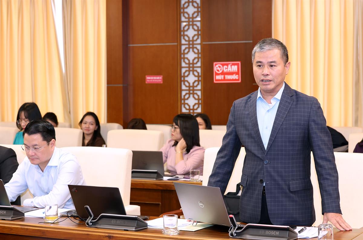 PGS, TS Hoàng Văn Nghĩa Vụ trưởng Vụ hợp tác quốc tế báo cáo tại hội nghị