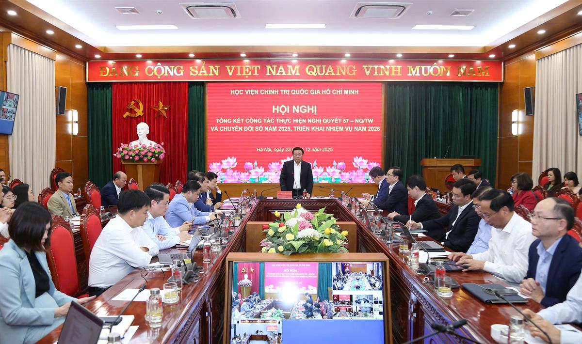 Tại Hội nghị, các đại biểu tham dự khẳng định, năm 2025, dù khối lượng công việc rất lớn, vừa phải bảo đảm nhiệm vụ đào tạo, nghiên cứu thường xuyên, vừa phải thực hiện sắp xếp tinh gọn bộ máy theo tinh thần chỉ đạo mới của Trung ương, nhưng với sự quyết tâm cao độ, Học viện đã đạt được những kết quả bước đầu rất đáng khích lệ trong triển khai thực hiện Nghị quyết số 57-NQ/TW và chuyển đổi số, tạo nền tảng số để Học viện từng bước chuyển đổi sang mô hình quản trị số và đào tạo hiện đại, khẳng định vai trò là trung tâm quốc gia về đào tạo, bồi dưỡng cán bộ và nghiên cứu lý luận chính trị và quản lý nhà nước trong tình hình mới.