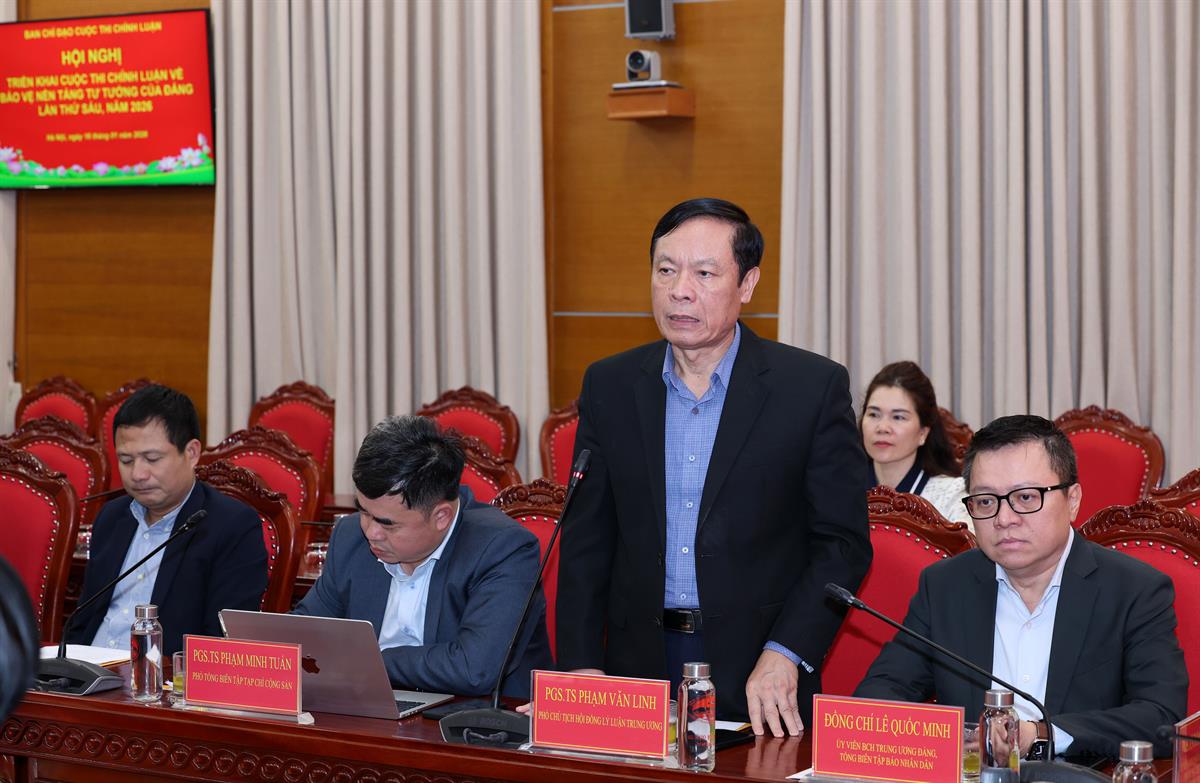 Báo cáo tại hội nghị, PGS,TS Lê Hải Bình cho biết: Phụ lục dự thảo Văn kiện trình Đại hội XIV của Đảng đã xác định việc tiếp tục đổi mới phương thức tổ chức Cuộc thi chính luận về bảo vệ nền tảng tư tưởng của Đảng là một trong những nội dung trọng tâm của công tác xây dựng Đảng về tư tưởng. Điều này khẳng định Cuộc thi không chỉ là một hoạt động chuyên môn, mà là nhiệm vụ chính trị quan trọng của cả hệ thống chính trị, đòi hỏi sự vào cuộc đồng bộ, trách nhiệm của các cấp ủy, tổ chức đảng, cơ quan, đơn vị, địa phương trong lãnh đạo, chỉ đạo và tổ chức thực hiện.