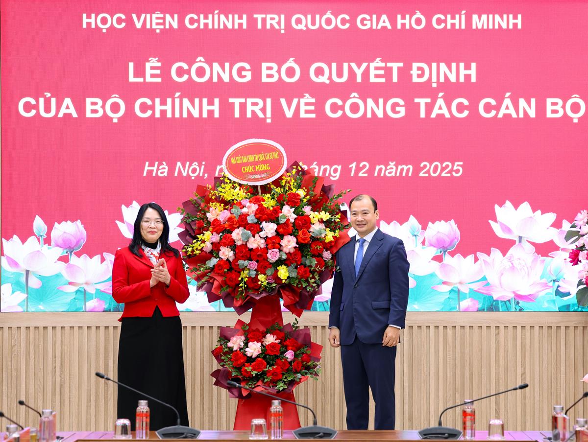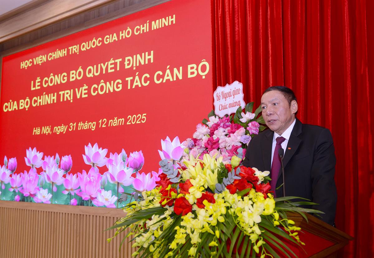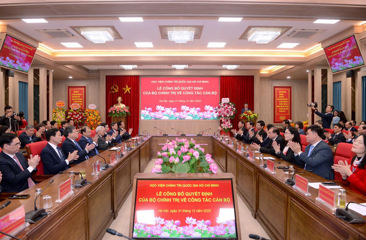 Tại buổi lễ, Ban Tổ chức Trung ương đã công bố Quyết định của Bộ Chính trị về công tác các bộ và Quyết định chỉ định tham gia Ban Chấp hành, Ban Thường vụ Học viện Chính trị quốc gia Hồ Chí Minh nhiệm kỳ 2025-2030. Theo đó: