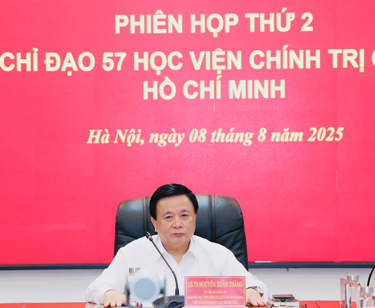 Chiều ngày 08/08/2025, Ban Chỉ đạo 57 Học viện Chính trị quốc gia Hồ Chí Minh tổ chức phiên họp định kỳ lần thứ 2. GS,TS Nguyễn Xuân Thắng, Ủy viên Bộ Chính trị, Giám đốc Học viện, Chủ tịch Hội đồng Lý luận Trung ương, Trường Ban Chỉ đạo 57 Học viện dự và chủ trì Hội nghị.