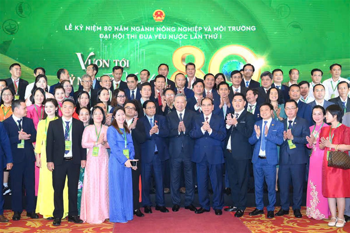 Tổng Bí thư nhấn mạnh, 80 năm qua, ngành nông nghiệp và môi trường đã đồng hành cùng dân tộc, trở thành trụ cột của nền kinh tế, nền tảng của sinh kế và nay trở thành nhân tố quan trọng trong công cuộc phát triển, chuyển mình của quốc gia. Thành tựu ấy là kết tinh của trí tuệ, công sức, tâm huyết của các thế hệ cán bộ, công nhân, nông dân, trí thức và doanh nghiệp Việt Nam, cùng sự quan tâm lãnh đạo, chỉ đạo sâu sát của Đảng, Nhà nước.
