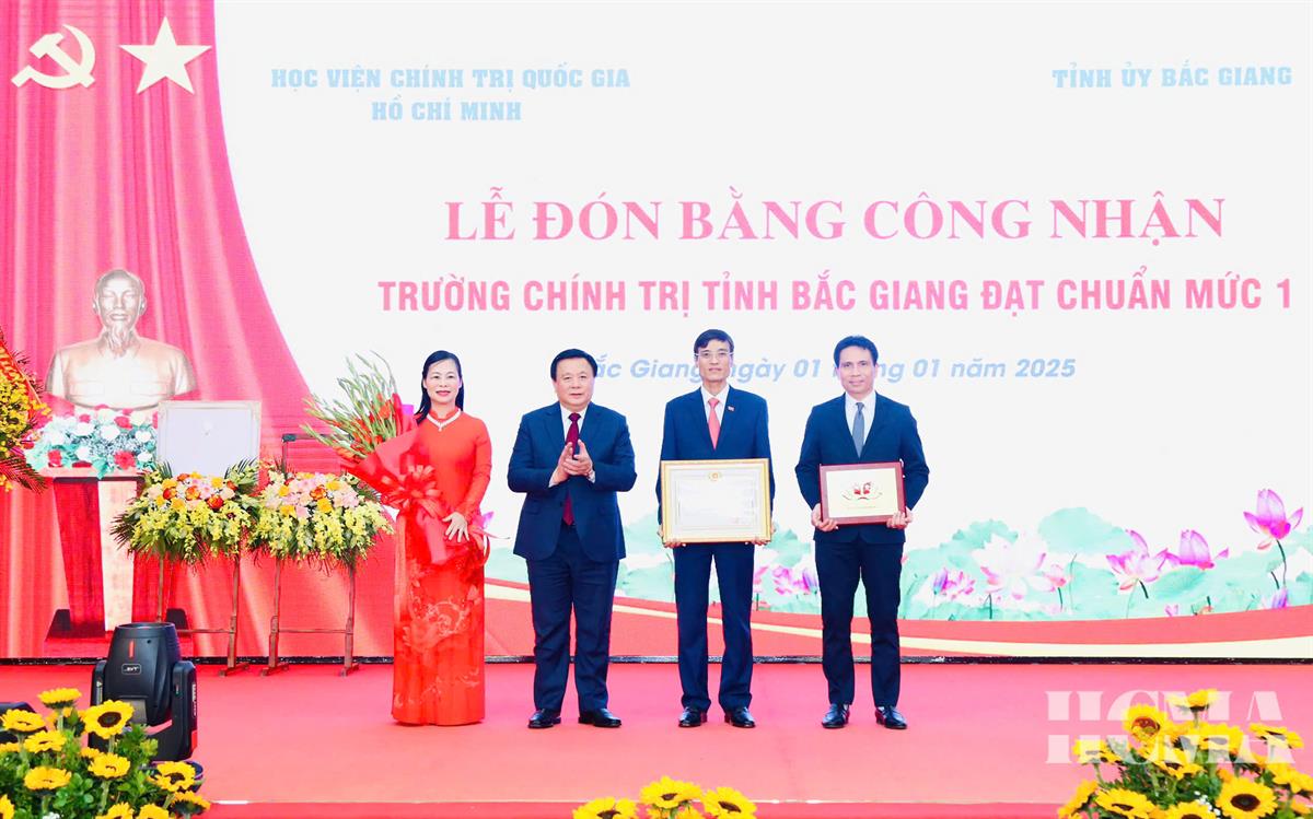 Trường Chính trị tỉnh Bắc Giang đón Bằng công nhận đạt chuẩn mức 1