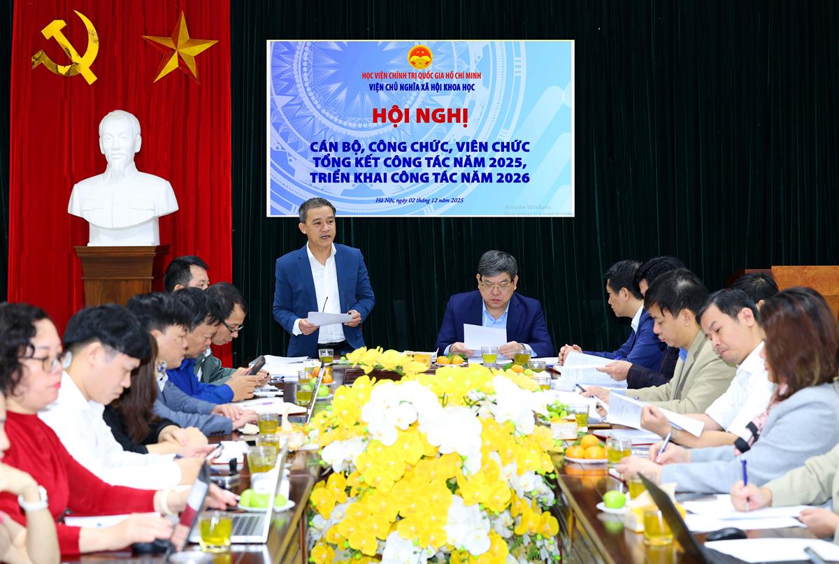 Báo cáo các mặt công tác năm 2025 và phương hướng nhiệm vụ năm 2026, TS Nguyễn Văn Quyết, Phó Bí thư, Phó Viện trưởng Viện Chủ nghĩa xã hội khoa học nhấn mạnh, năm 2025, với tinh thần đoàn kết, nỗ lực và chủ động đổi mới, Viện Chủ nghĩa xã hội khoa học đã hoàn thành toàn diện các nhiệm vụ về đào tạo, bồi dưỡng, nghiên cứu khoa học và hợp tác quốc tế; góp phần nâng cao chất lượng giảng dạy, nghiên cứu và tham mưu chiến lược của Học viện Chính trị quốc gia Hồ Chí Minh.