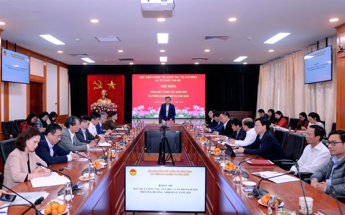 Qua báo cáo tổng kết cho thấy, năm 2025, chất lượng tham mưu về công tác tổ chức cán bộ được triển khai chặt chẽ, khoa học và đúng thẩm quyền, tạo hành lang pháp lý vững chắc cho toàn hệ thống, thể hiện qua việc tham mưu ban hành Quy chế làm việc của Học viện, Quyết định phân công công tác của Ban Giám đốc và kịp thời thể chế hóa Quyết định số 214-QĐ/TW; kịp thời giải quyết các vấn đề sau sắp xếp tổ chức bộ máy và sáp nhập Học viện Hành chính quốc gia. Trình độ, năng lực của đội ngũ cán bộ, công chức được nâng lên, chất lượng và hiệu suất công tác có chuyển biến tích cực; tinh thần đoàn kết, ý thức trách nhiệm, sự phối hợp và chia sẻ trong thực hiện nhiệm vụ được tăng cường, bảo đảm tính chủ động, sáng tạo; sự phối hợp giữa các cơ quan, đơn vị trong và ngoài Học viện về công tác tổ chức, cán bộ ngày càng chặt chẽ, hiệu quả.