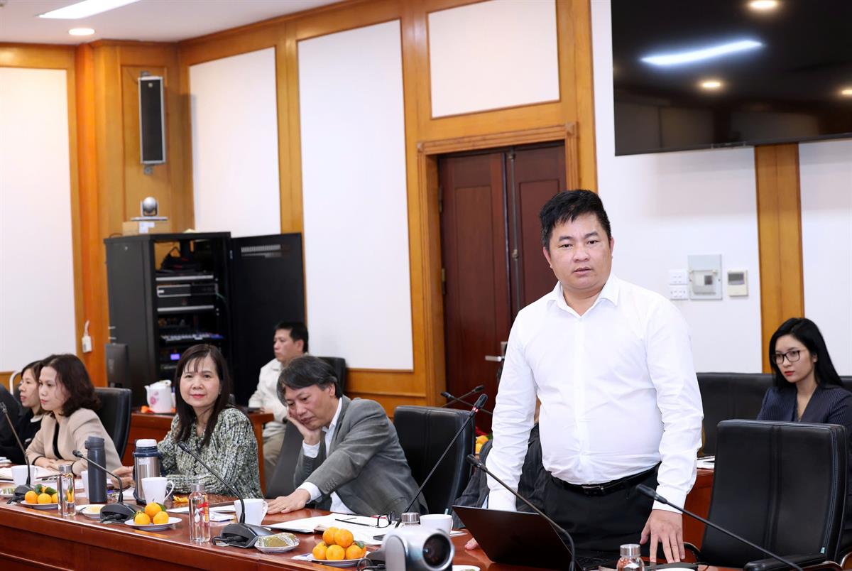 Đồng chí Đinh Ngọc Giang, Bí thư Chi bộ, Vụ trưởng Vụ Tổ chức cán bộ báo cáo tại hội nghị