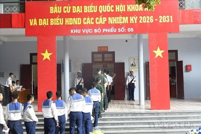 Sáng 8/3/2026, quân và dân ở 20/22 tổ bầu cử thuộc đặc khu Trường Sa (tỉnh Khánh Hòa) rộn ràng đi bỏ phiếu bầu cử đại biểu Quốc hội khóa XVI và HĐND các cấp nhiệm kỳ 2026 - 2031, sớm một tuần so với thời điểm diễn ra bầu cử chính thức của cả nước. Ảnh: TTXVN phát
