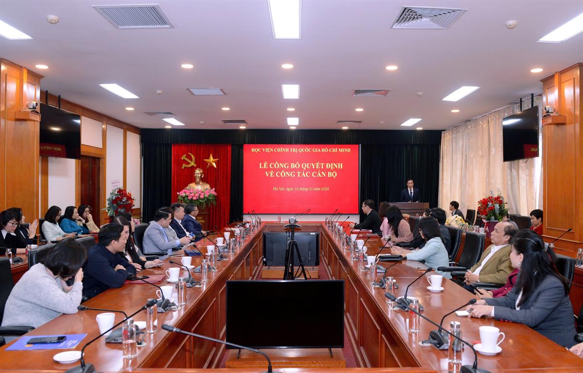 Tại buổi lễ, thừa ủy quyền Giám đốc Học viện, đại diện lãnh đạo Vụ Tổ chức cán bộ công bố quyết định bổ nhiệm TS Hà Thị Bích Thủy, nghiên cứu viên Văn phòng Đề án 587, Vụ Tổ chức cán bộ giữ chức Phó Chánh Văn phòng Đề án 587, Vụ Tổ chức cán bộ. Thời gian giữ chức vụ bổ nhiệm là 05 năm.