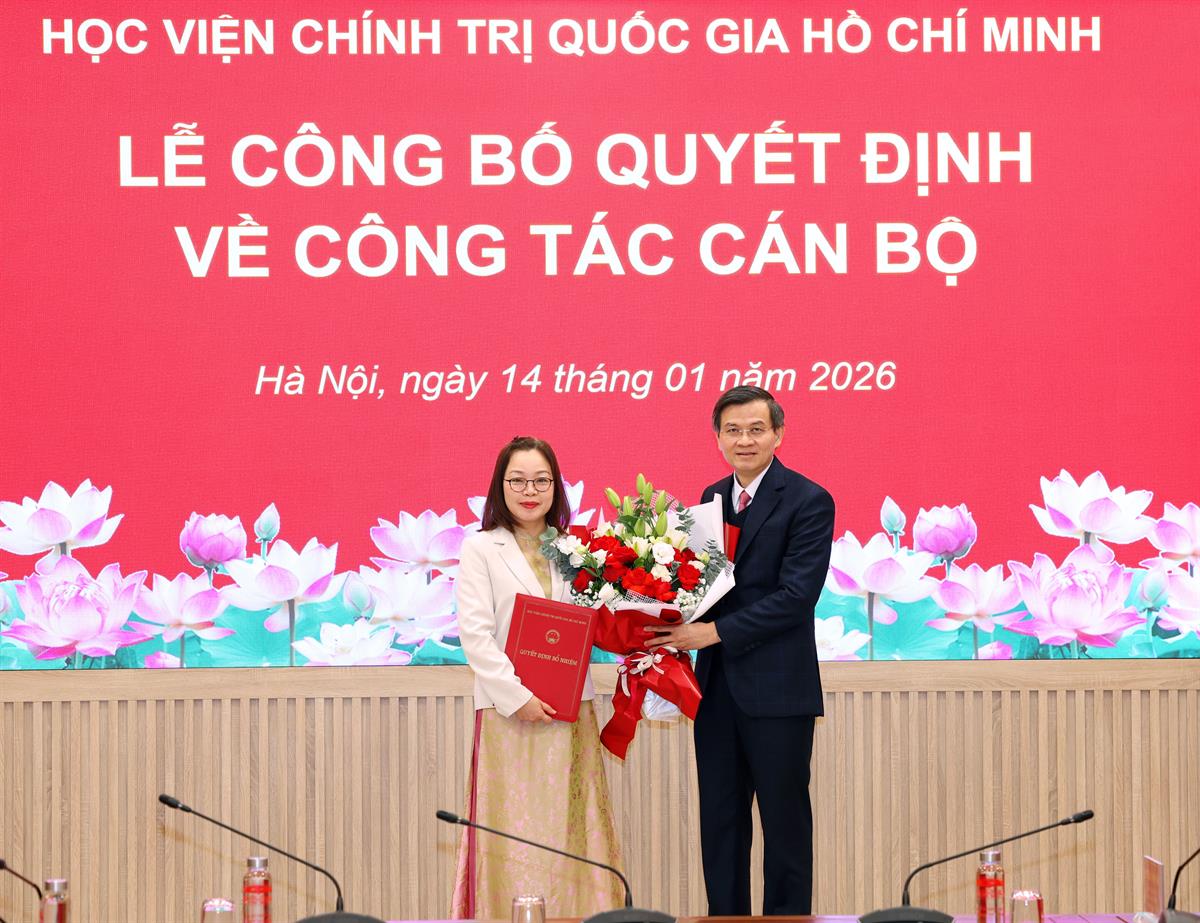 Tại buổi Lễ, thừa ủy quyền của Giám đốc Học viện Chính trị quốc gia Hồ Chí Minh, đại diện lãnh đạo Vụ Tổ chức cán bộ công bố Quyết định bổ nhiệm lại TS Trần Thị Tú Anh, Phó Vụ trưởng Vụ Quản lý đào tạo, bồi dưỡng tiếp tục giữ chức Phó Vụ trưởng Vụ Quản lý đào tạo, bồi dưỡng kể từ ngày 01/01/2026. Thời gian giữ chức vụ bổ nhiệm lại là 05 năm.