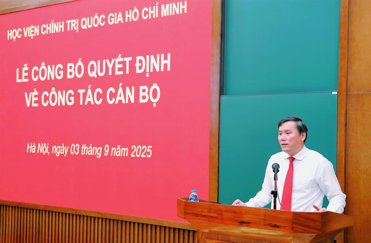 Tại buổi Lễ, thừa ủy quyền của Giám đốc Học viện Chính trị quốc gia Hồ Chí Minh, đại diện lãnh đạo Vụ Tổ chức cán bộ công bố các Quyết định: