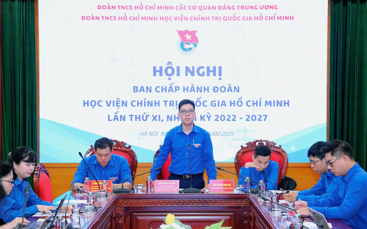 Chủ trì Hội nghị có đồng chí Đào Anh Tuấn, Uỷ viên Ban Chấp hành Trung ương Đoàn, Uỷ viên Ban Thường vụ Đoàn các cơ quan Đảng Trung ương, Bí thư Đoàn Thanh niên Học viện Chính trị quốc gia Hồ Minh; đồng chí Đinh Trung Sơn, Phó Bí Thư Đoàn Học viện Chính trị quốc gia Hồ Chí Minh; đồng chí Phan Hoàng Quỳnh, Phó Bí Thư Đoàn Học viện Chính trị quốc gia Hồ Chí Minh, Bí thư Đoàn Học viện Báo chí và Tuyên truyền.