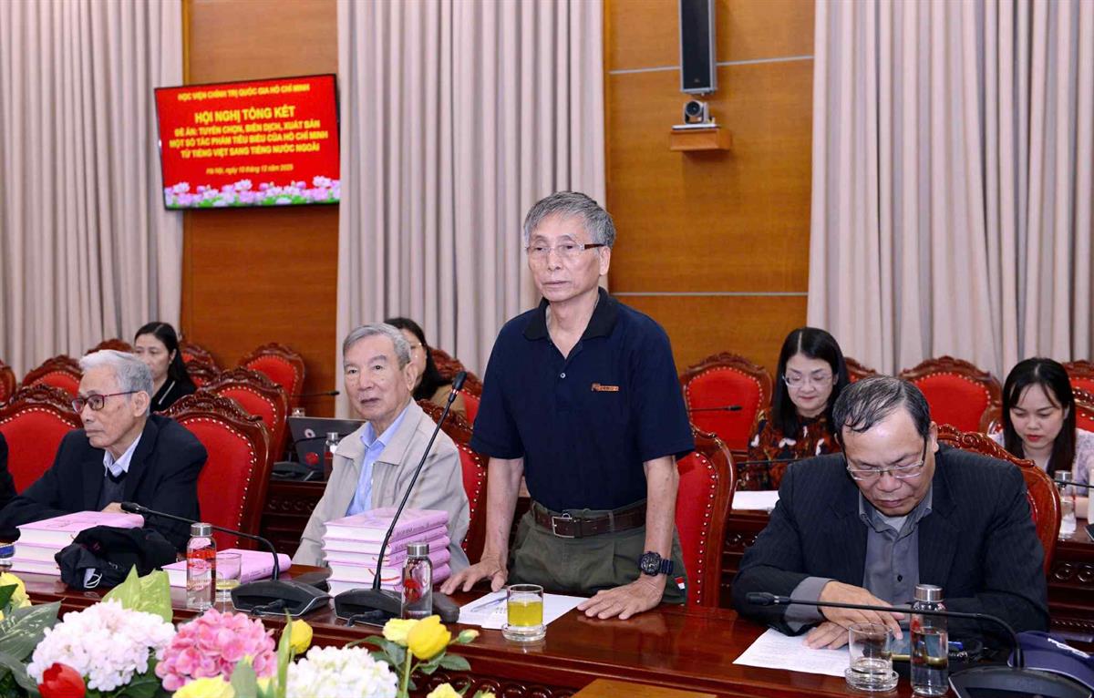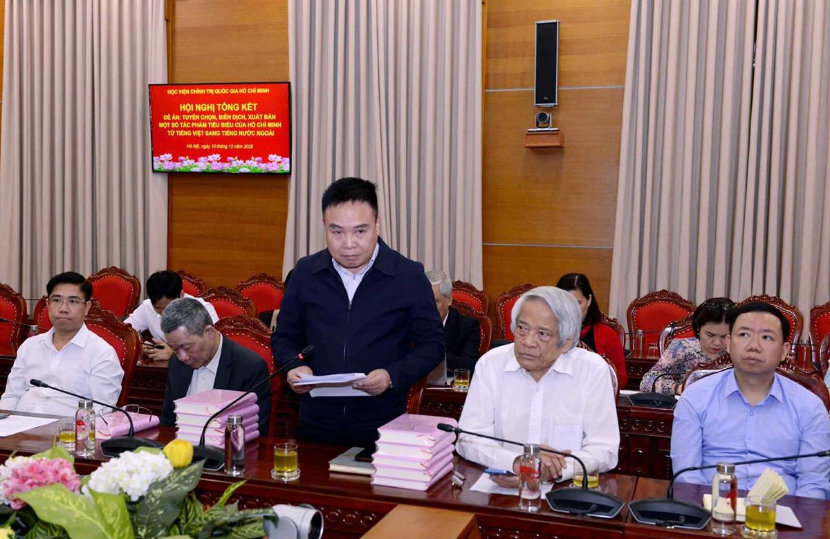 Báo cáo tổng kết Đề án, PGS,TS Nguyễn Mạnh Hùng, Phó Giám đốc Học viện Chính trị quốc gia Hồ Chí Minh, Phó Chủ tịch Hội đồng Lý luận Trung ương cho biết, để đáp ứng nhu cầu nghiên cứu, tìm hiểu về Chủ tịch Hồ Chí Minh của đông đảo đồng bào Việt Nam ở nước ngoài và bạn bè quốc tế, lan tỏa giá trị di sản Hồ Chí Minh ra thế giới; tiếp tục thực hiện Nghị quyết của Tổ chức Giáo dục, Khoa học và Văn hóa Liên hợp quốc (UNESCO) tôn vinh Hồ Chí Minh là “Anh hùng giải phóng dân tộc, Nhà văn hóa kiệt xuất”; thực hiện chỉ đạo của Ban Bí thư Trung ương Đảng, ngày 3/8/2021, Giám đốc Học viện Chính trị quốc gia Hồ Chí Minh đã ra Quyết định số 4043/HVCTQG, phê duyệt tổ chức chủ trì, cá nhân chủ nhiệm, thời gian và kinh phí thực hiện Đề án khoa học cấp bộ trọng điểm: “Tuyển chọn, biên dịch và xuất bản bộ sách một số tác phẩm tiêu biểu của Hồ Chí Minh từ tiếng Việt sang tiếng nước ngoài”.