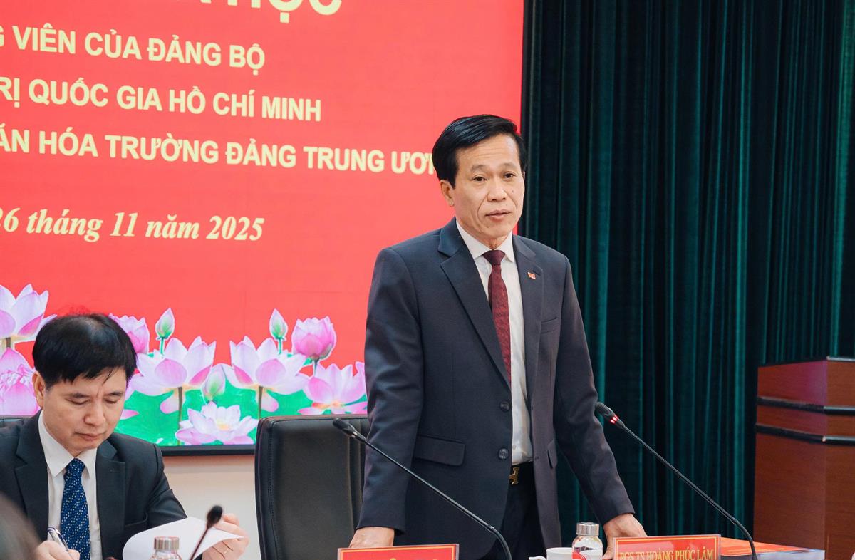 Hội thảo nhằm nhìn nhận sâu sắc giá trị truyền thống của văn hóa Trường Đảng, đồng thời xác định nhiệm vụ, giải pháp để đội ngũ cán bộ, đảng viên tiếp tục bồi đắp, lan tỏa những giá trị đặc sắc ấy trong bối cảnh chuyển đổi số, toàn cầu hóa và yêu cầu mới của công tác xây dựng Đảng hiện nay. PGS,TS Hoàng Phúc Lâm, Phó Bí thư Đảng ủy, Phó Giám đốc Học viện và PGS,TS Hoàng Anh, Vụ trưởng Vụ Quản lý khoa học đồng chủ trì Hội thảo.